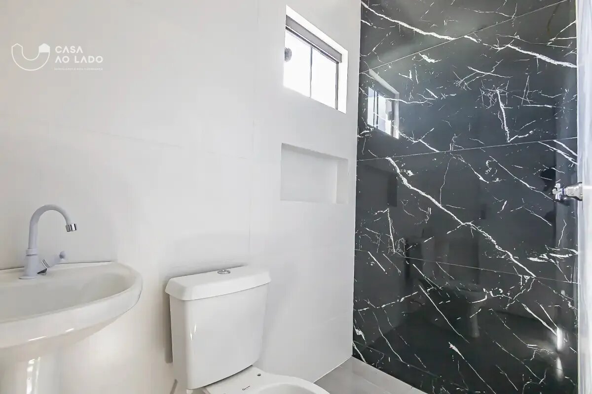 Sobrado com distribuição funcional e excelente aproveitamento dos espaços. Dispõe de três quartos amplos e bem distribuídos, todos com pintura acrílica e piso em cerâmica. A sala de estar é integrada à cozinha, criando um ambiente mais amplo, acolhedor e ideal para o convívio diário.