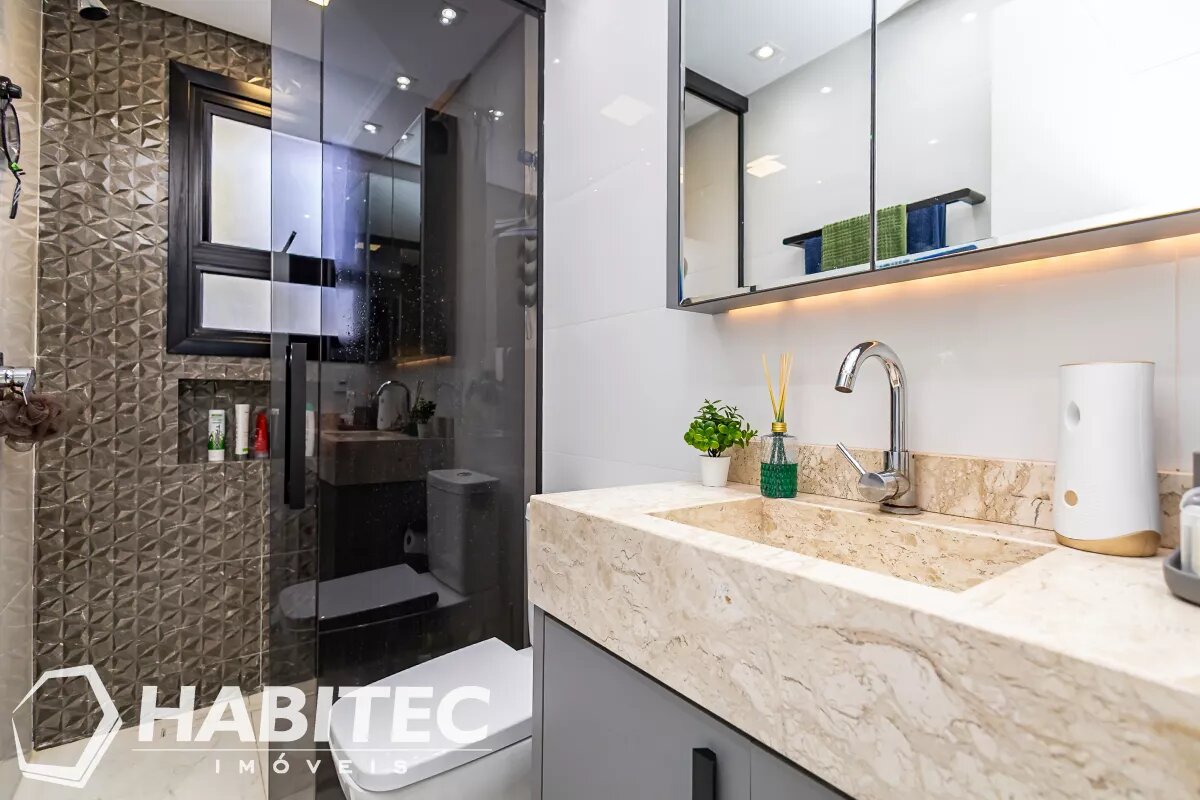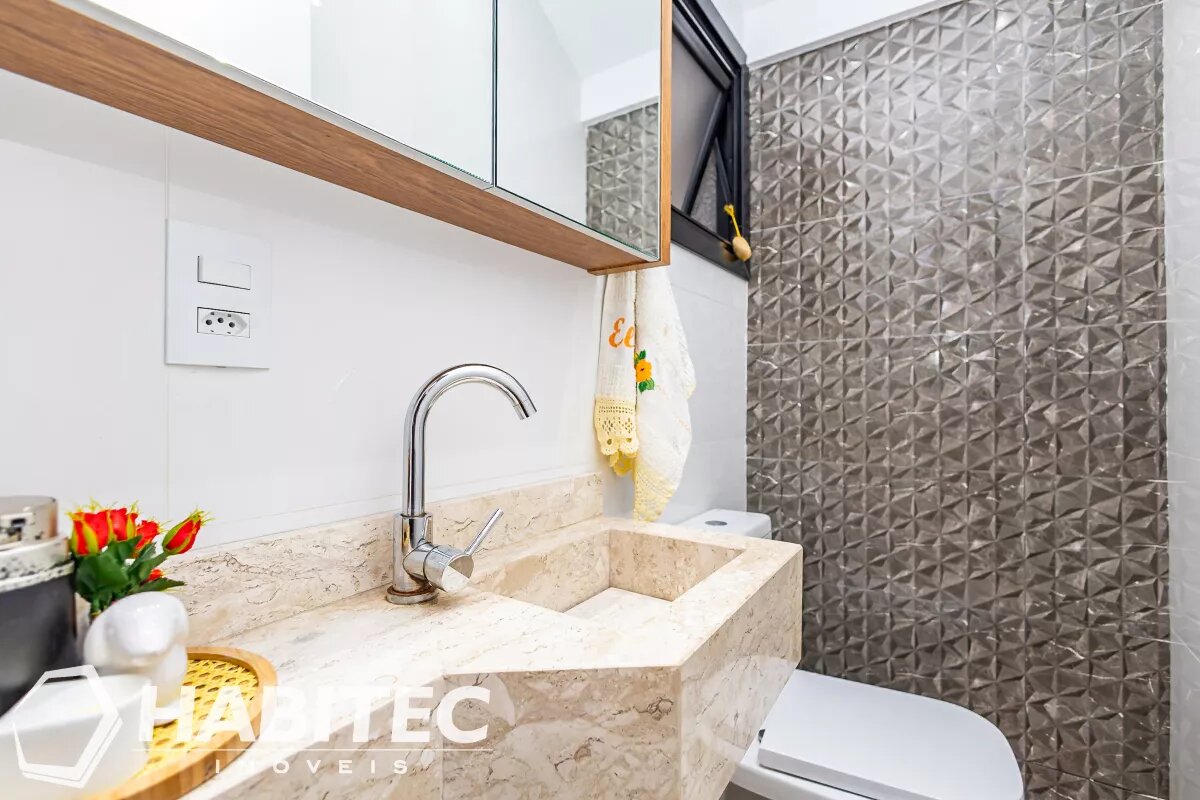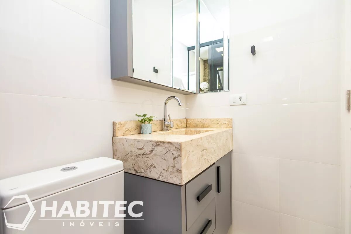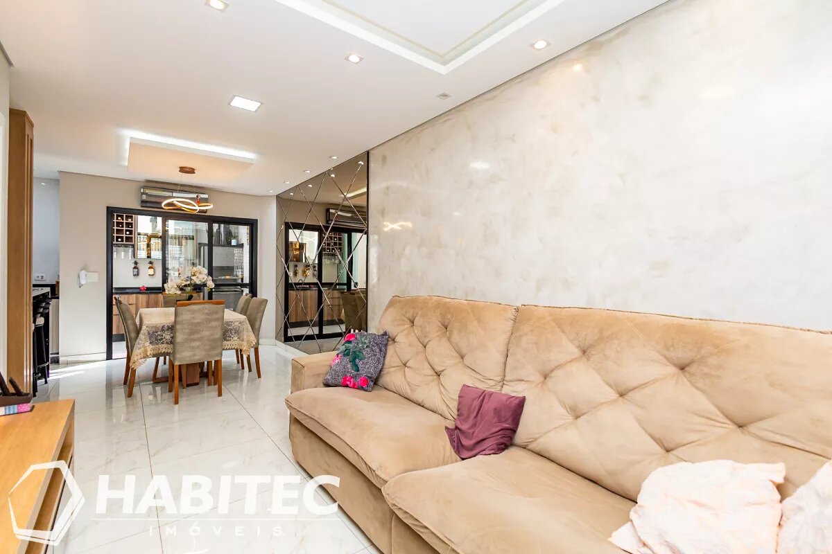 Sala de estar e jantar integradas, com ar-condicionado. Ainda no primeiro pavimento, um lavabo e cozinha modernizada com armários planejados e iluminação projetada. Aos fundos, uma churrasqueira com teto retrátil e área de serviço.