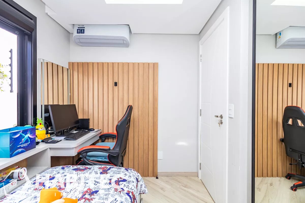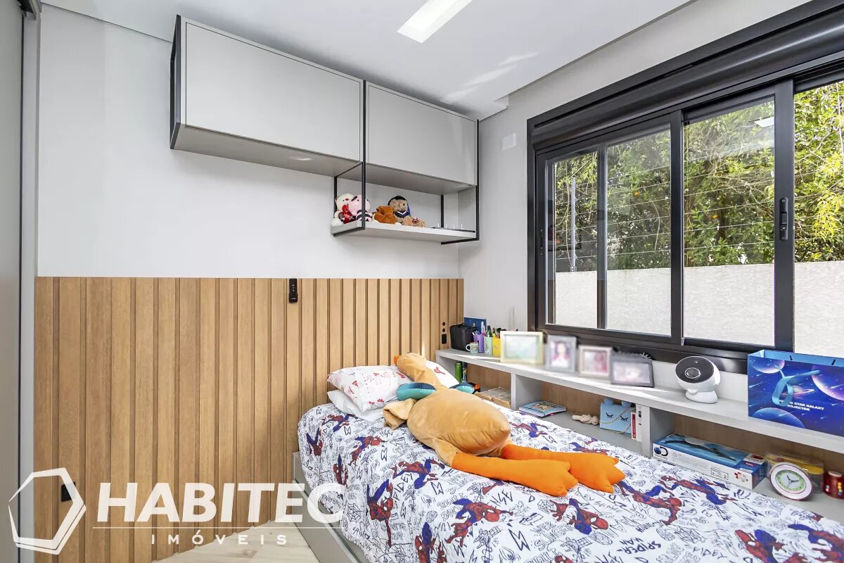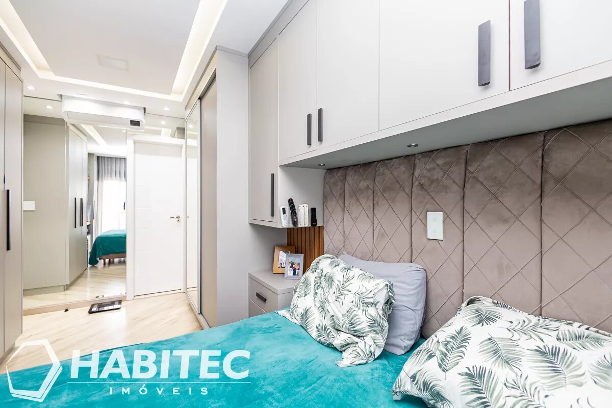 São 4 quartos, sendo uma suíte. Todos com ar condicionado, venezianas eletrônicas e armários planejados. Possui 2 banheiros sociais (1º andar e ático), o banheiro da suíte e o lavabo no térreo, totalizando 4 banheiros. Famílias grandes e visitas não serão um problema!