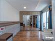 Sala de jantar aconchegante e lavabo moderno.