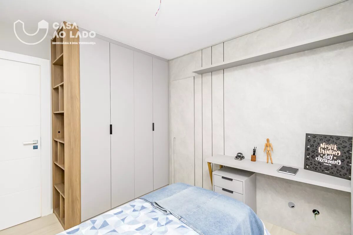 Na área íntima, localizada no segundo pavimento, o imóvel dispõe de três dormitórios bem distribuídos, incluindo uma suíte, além de um banheiro social completo que atende os outros dois quartos.