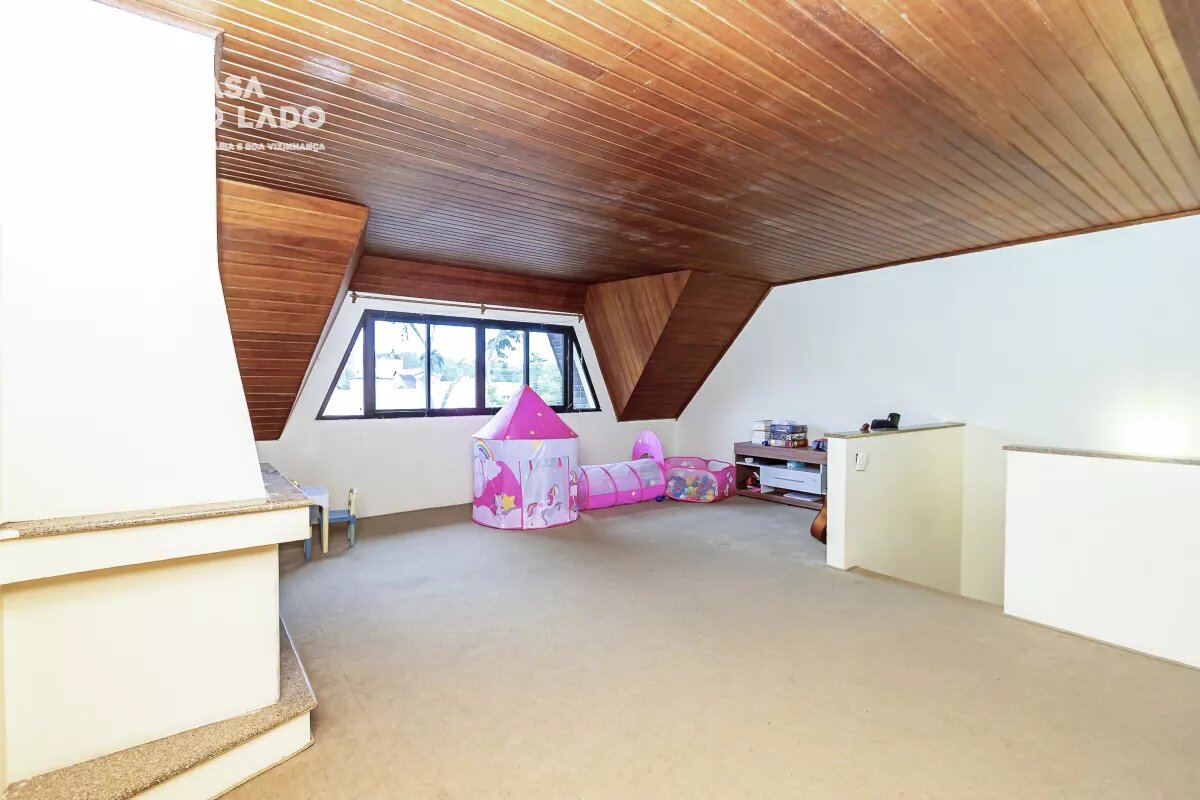 O ático é um espaço versátil, que pode ser utilizado como escritório, sala de TV ou até mesmo um quarto adicional. Entre os diferenciais do imóvel, destacam-se a churrasqueira, ideal para confraternizações com família e amigos, e a lareira, que garante aconchego nos dias mais frios.