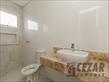 Banheiro social espaçoso, com pia e metais.
