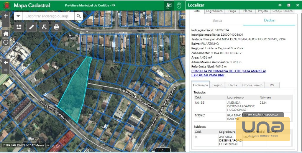 - Testada de 55,30 metros para a Av. Des. Hugo Simas.