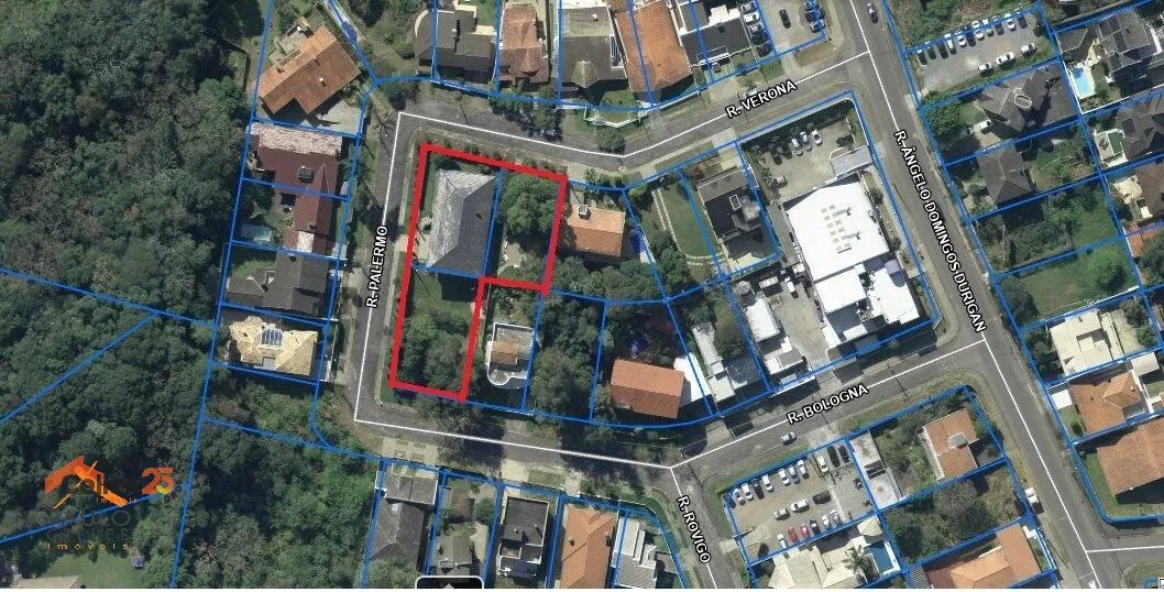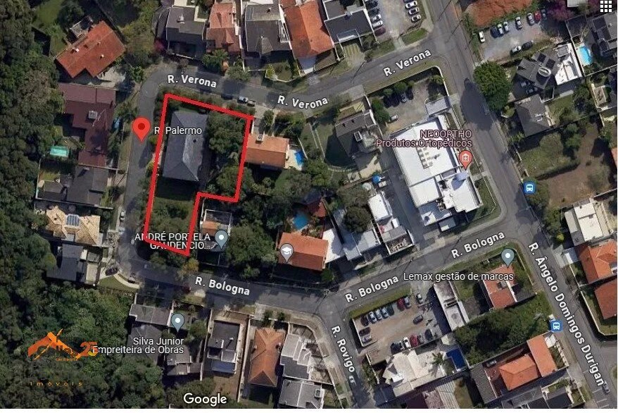 Terreno com 3 testadas, 60m para a Rua Palermo, 15m para rua Verona e 20m para a Rua Bologna.