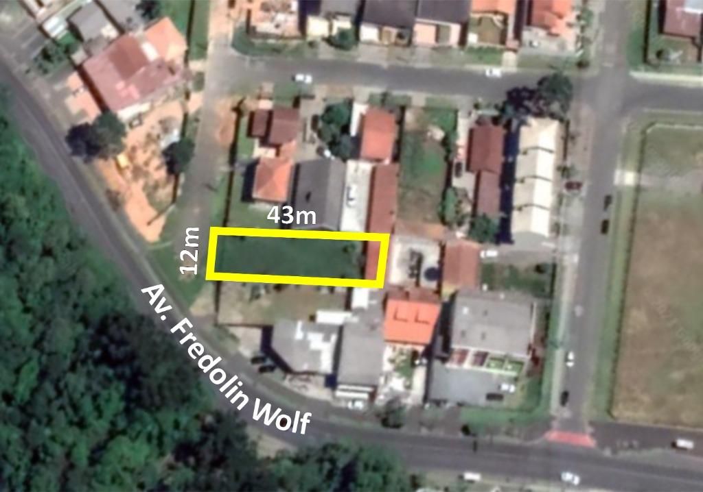 Terreno com 516 m² privativos em rua tranquila sem saída esquina com Rua Fredolin Wolf no Bairro Pilarzinho.