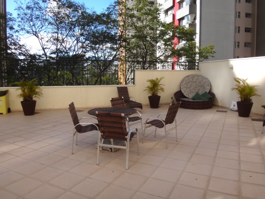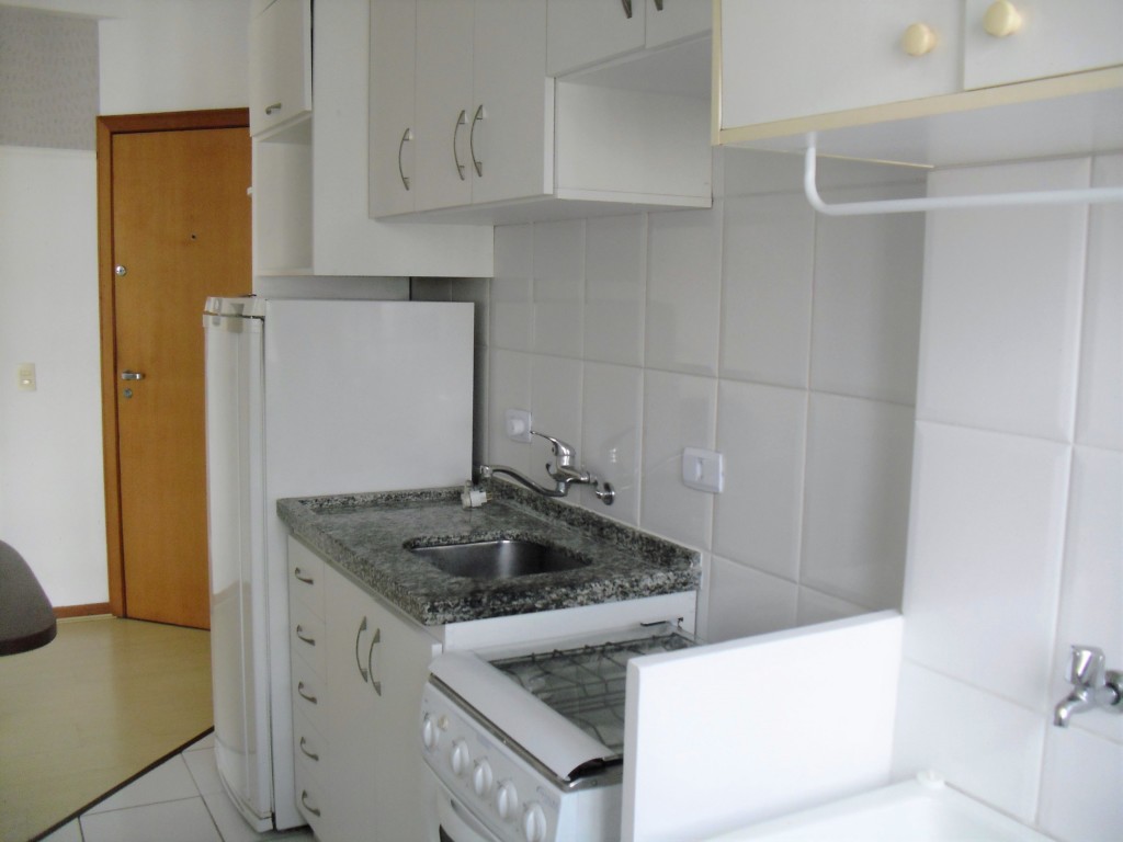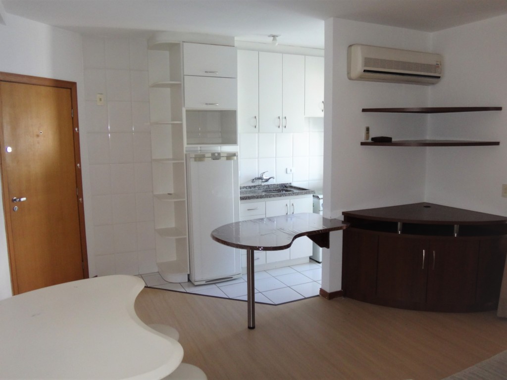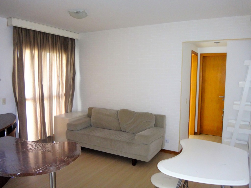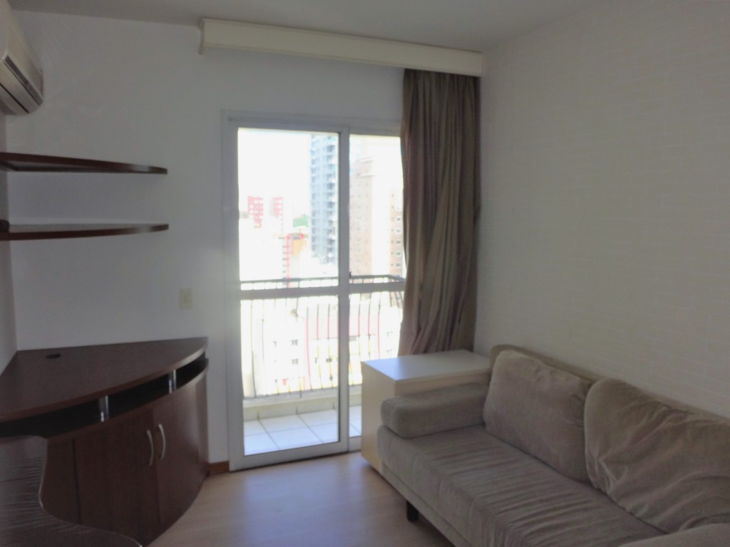 Ótimo Apartamento piso laminado, todo mobiliado, face norte, sala com sofá, rack, mesa com cadeira, ar condicionado, sacada, cozinha com pia tampa em granito, armários planejados, geladeira, fogão, ponto para área de serviço com tanque em louça, 01 dormitório com cama box casal, armários planejados e banheiro com box em vidro. Condomínio oferece: Portaria 24 horas, lavanderia, salão de festas, churrasqueira, bicicletário, espaço fitness e piscina.