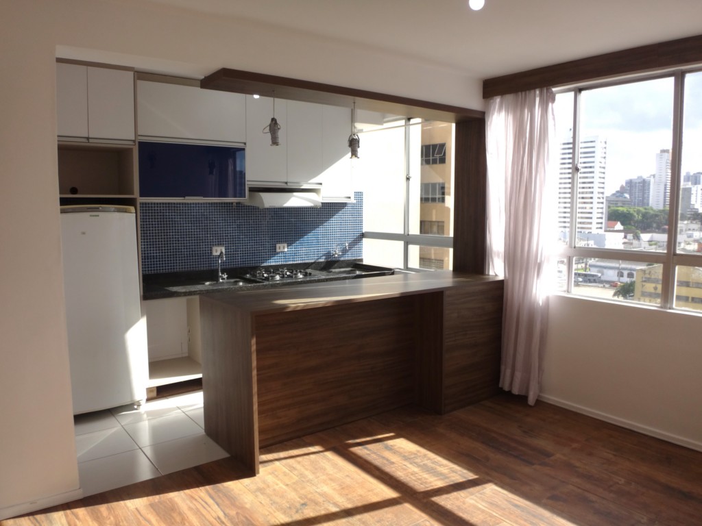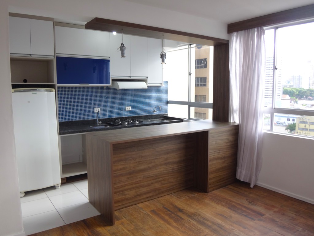 Ótimo apartamento ensolarado e arejado, 9º andar, piso cerâmica, pintura nova, sala conjugada com cozinha, dormitório com armário, banheiro box em vidro e armário, cozinha integrada com sala contendo balcão americano pia tampa em granito com extenção contendo cooktop ( a gás), exaustor, forno eletrico embutido, geladeira e ponto com área de serviço contendo tanque imbutido cuba em aluminio e espaço para máquina de lavar roupa. Agende sua visita.