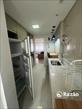 Área de serviço individualizada com armário embutido, máquina de lavar, filtro de água e tanque
