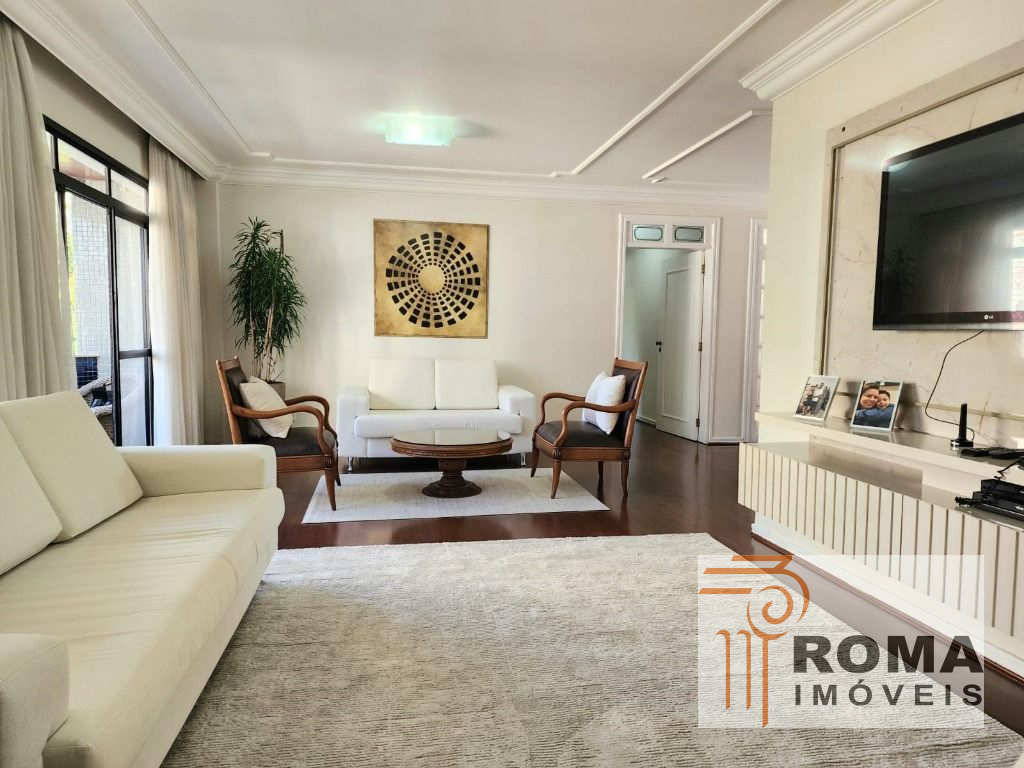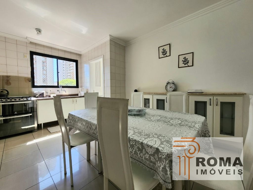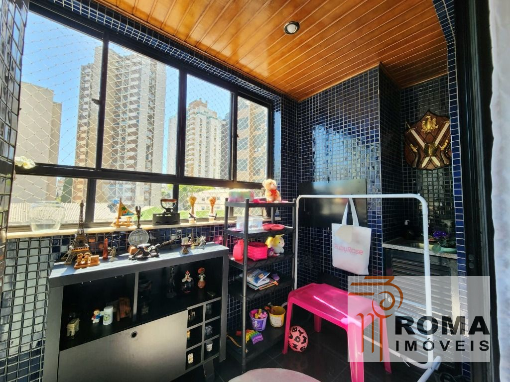 Composto por 03 quartos, sendo 01 suíte com armário, ampla sala em 2 ambientes, sala de TV e estar com varanda, cozinha planejada incluindo mesa de jantar, lavanderia com armário, lavabo, banheiro social, dependencia completa para funcionários, sacada com churrasqueira, vaga livre para 01 veiculo grande;