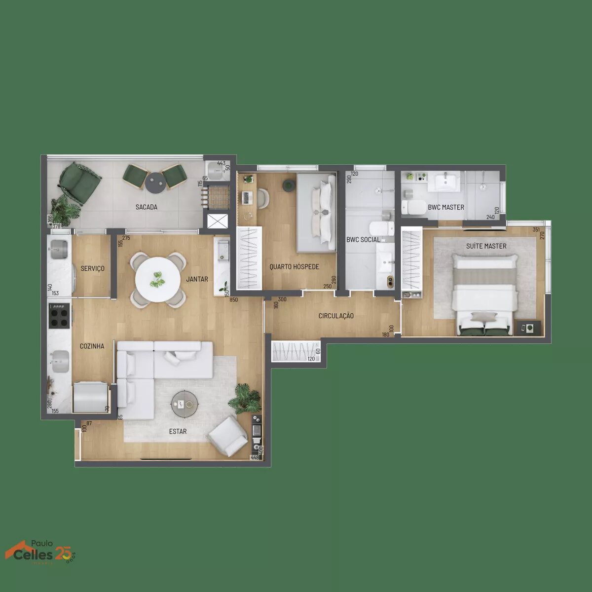 Apartamento com 2 quartos, sendo 1 suíte, 70 m² privativos, sala para dois ambientes e sacada com churrasqueira a carvão. Dispões de 1 vaga de garagem e infraestrutura para abastecimento de carros elétricos, com um ponto exclusivo por apartamento.