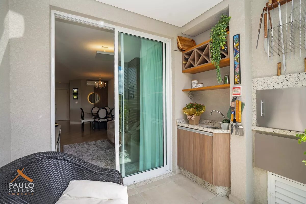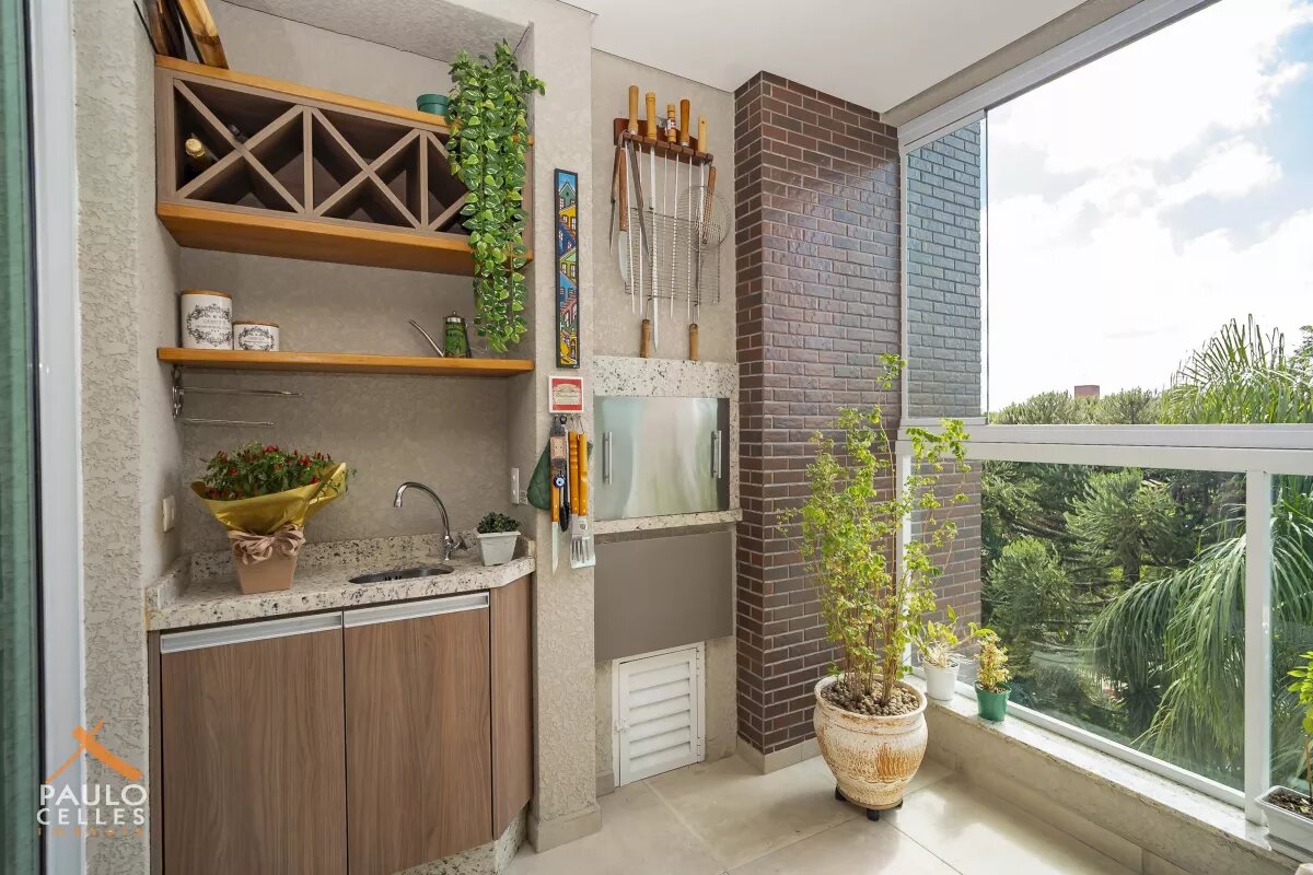 Varanda ampla, com churrasqueira e uma belíssima vista.