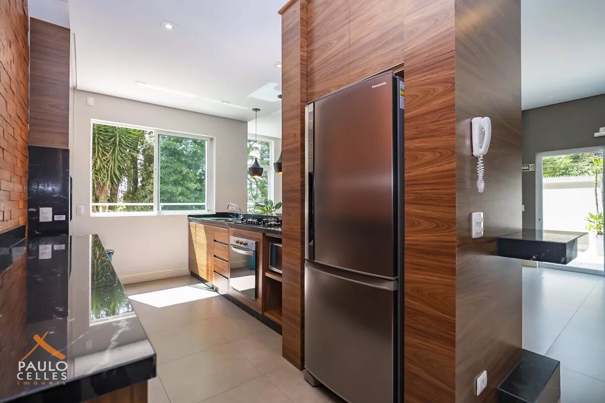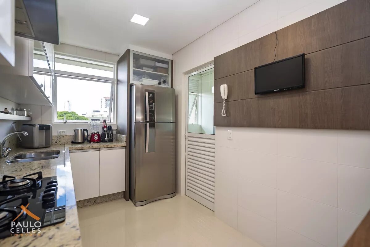 Cozinha estilo americano, com parte integrada à sala, e área de serviço muito funcional.