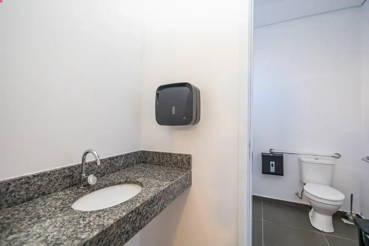 • Revestimento porcelanato nas paredes do banheiro e cozinha.