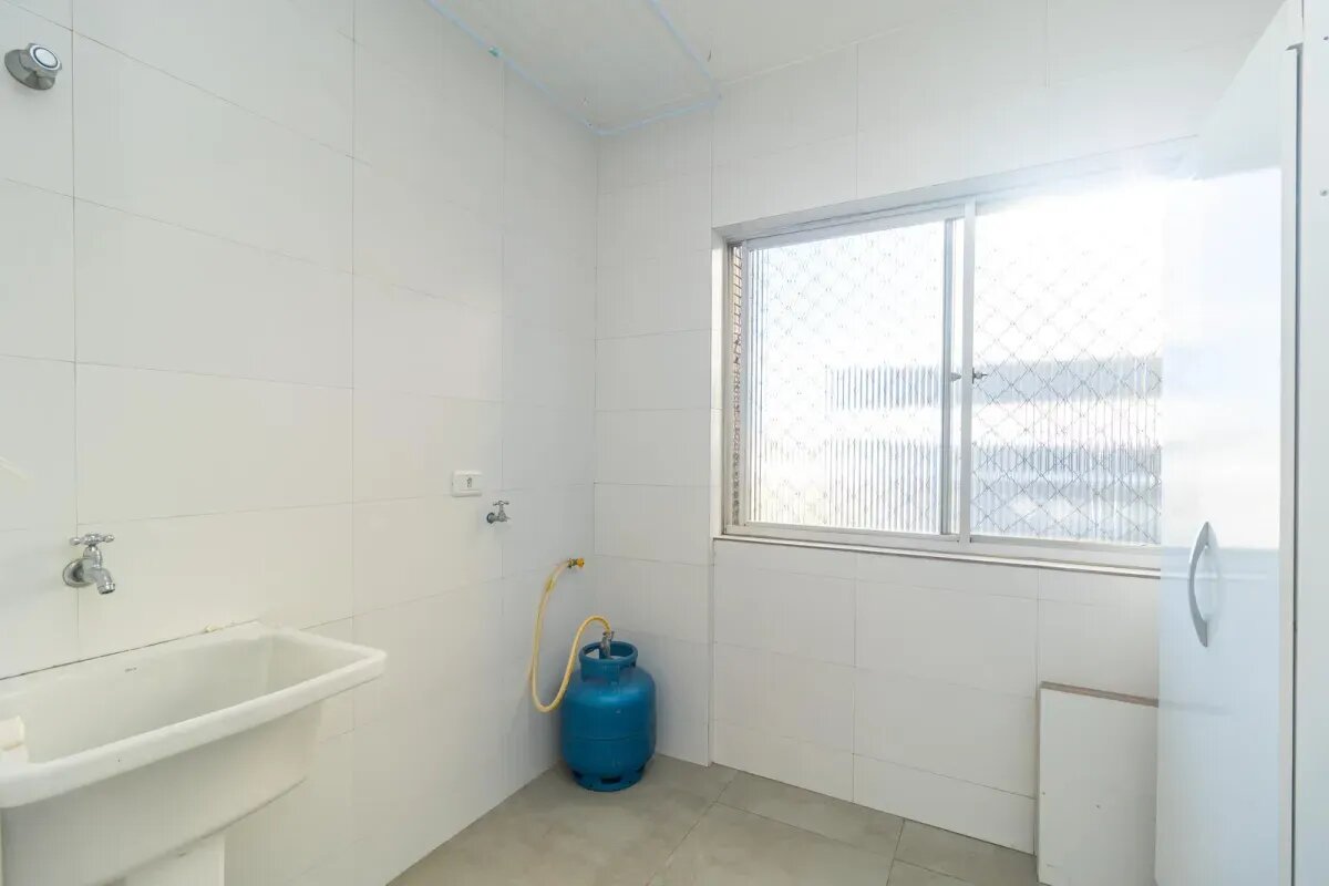 - Lavanderia com tanque e espaço para máquina de lavar.