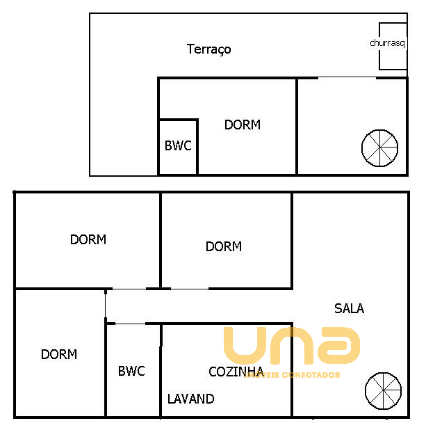 - Ampla sala, banheiro e terraço com churrasqueira coberta.