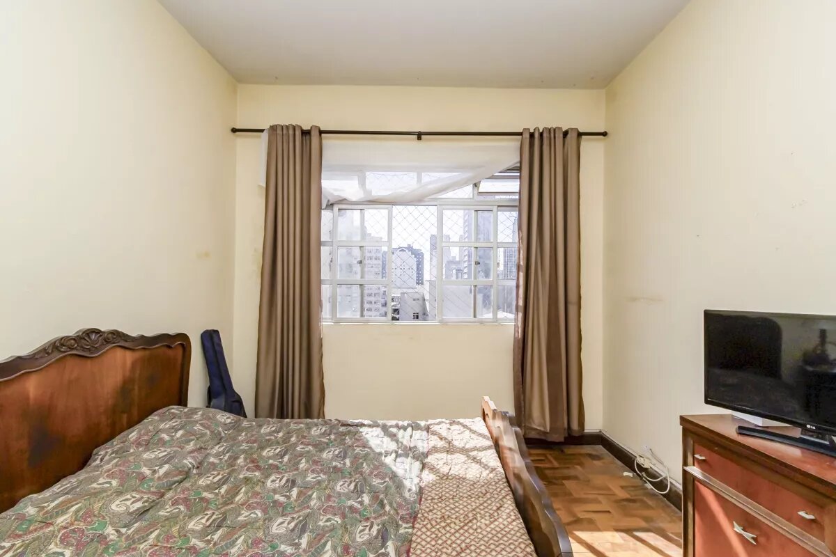 Apartamento Centro. Edifício São Lourenço, com área total de 96,00 m². Com 2 quartos amplos, 2 salas, Banheiro social, cozinha, área de serviço, de frente para Rua José Loureiro, face norte, andar alto, apartamento claro e arejado, com serviço de portaria no horário comercial. A metragem acima citada é do iptu, considerando área total e útil, as áreas não são mencionadas no registro de imóveis da unidade.