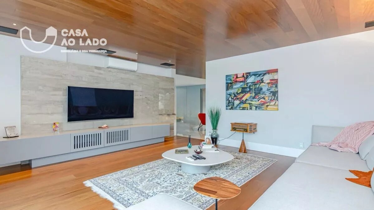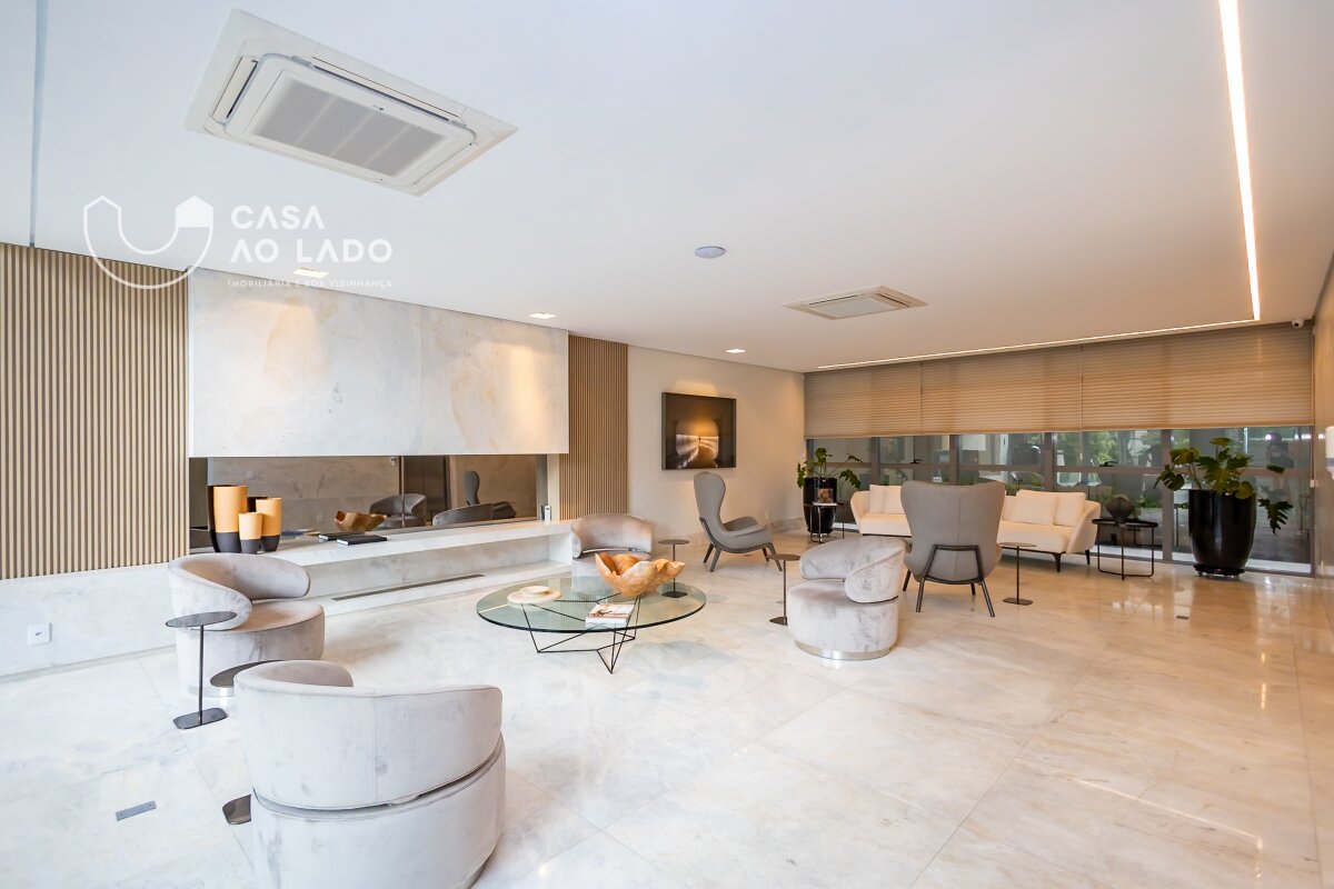 O ar-condicionado conta com grelhas lineares no living e splits nas suítes. Todos os ambientes possuem forro em gesso e pé-direito generoso, além de portas altas com sistema de vedação. Construído com paredes em alvenaria, tubulações de esgoto com atenuação acústica e vidros laminados de 8mm, o apartamento oferece excelente desempenho termoacústico. Materiais nobres e acabamentos de alto padrão complementam uma residência sofisticada em uma localização privilegiada.