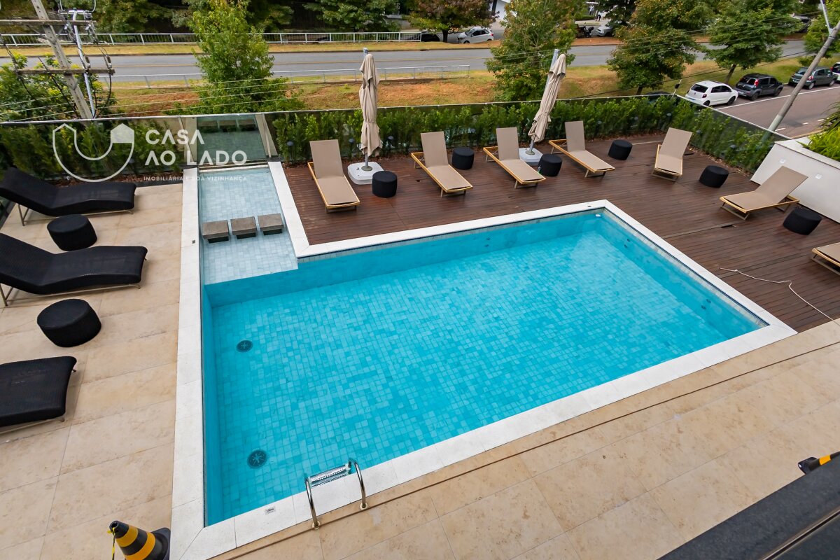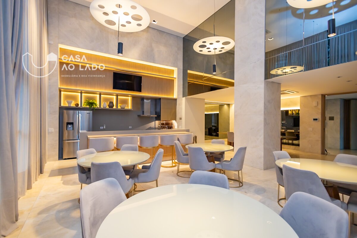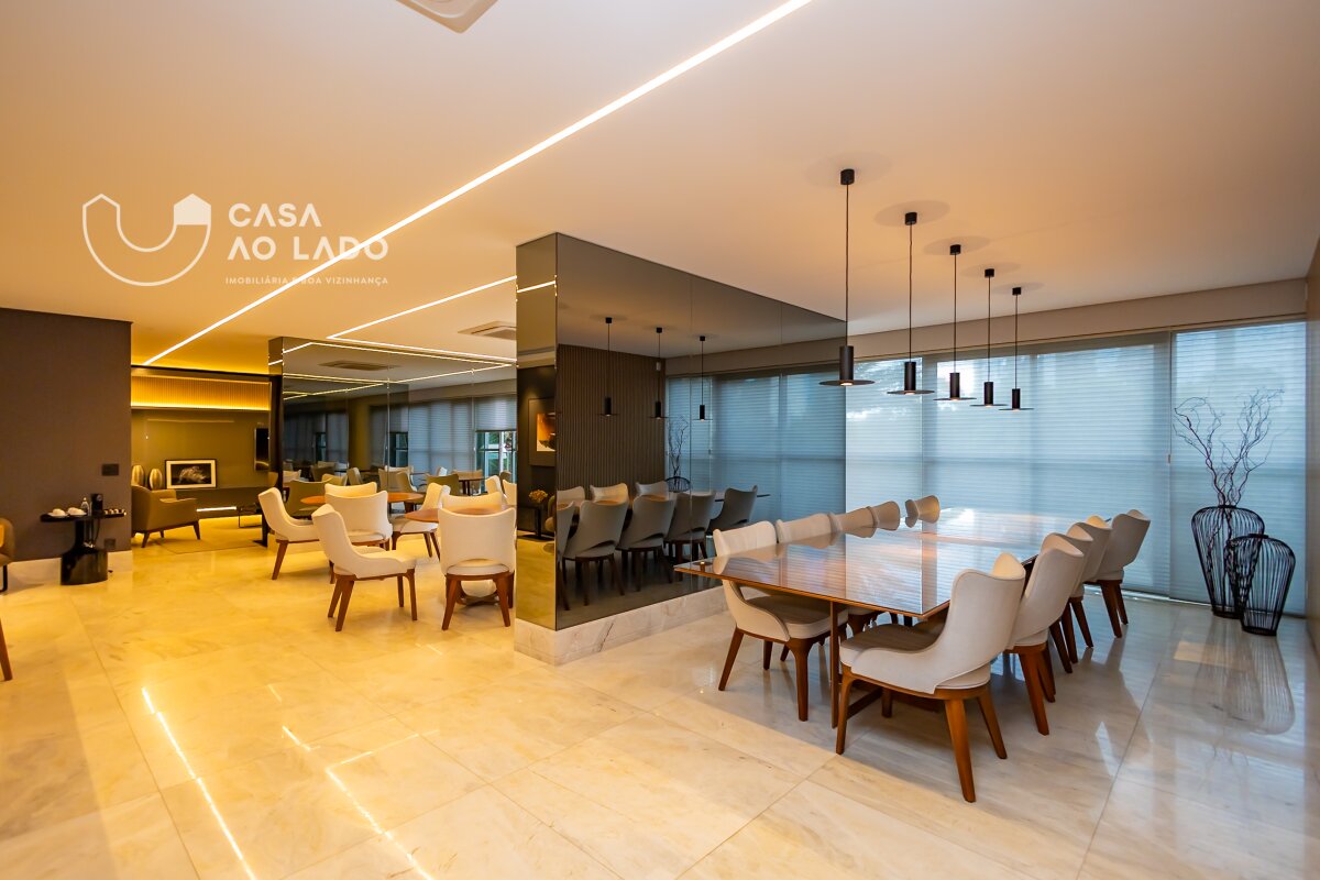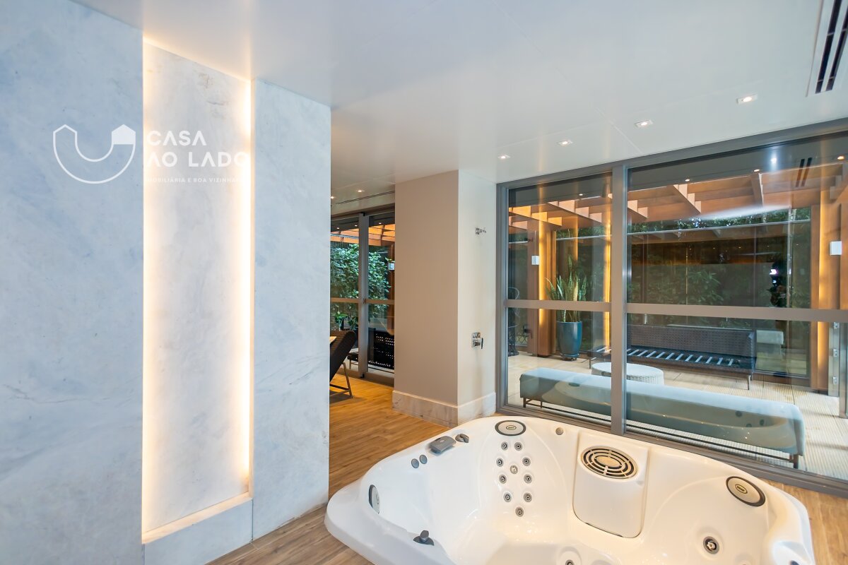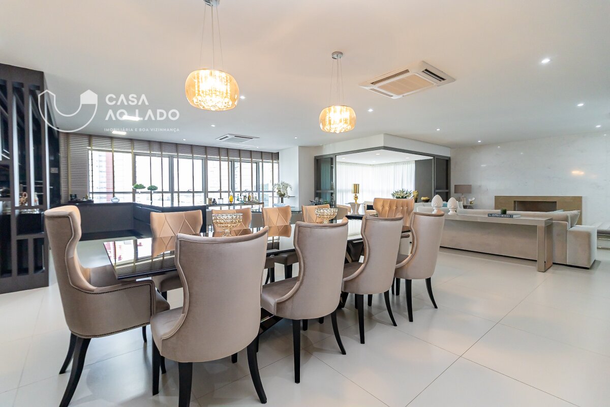 Ambientes amplos e perfeitamente integrados. A área social oferece sala de jantar, sala de estar com lareira, espaço gourmet com churrasqueira a carvão, sala de TV, adega climatizada para 150 garrafas e uma deliciosa sacada totalmente incorporada ao living. Na área íntima, são 3 excelentes suítes, com possibilidade de reversão para 4. A suíte master é encantadora: conta com amplo closet, sacada privativa, lareira, banheiro espaçoso com duas duchas, banheira de hidromassagem, toalheiro térmico e vaso sanitário com assento eletrônico Toto. Todas as janelas são generosas, com 2,20m de altura e persianas motorizadas, garantindo luminosidade e conforto. Os banheiros apresentam bancadas e piso em mármore Branco Paraná com aquecimento, duchas e torneiras de alta qualidade e ralo linear.