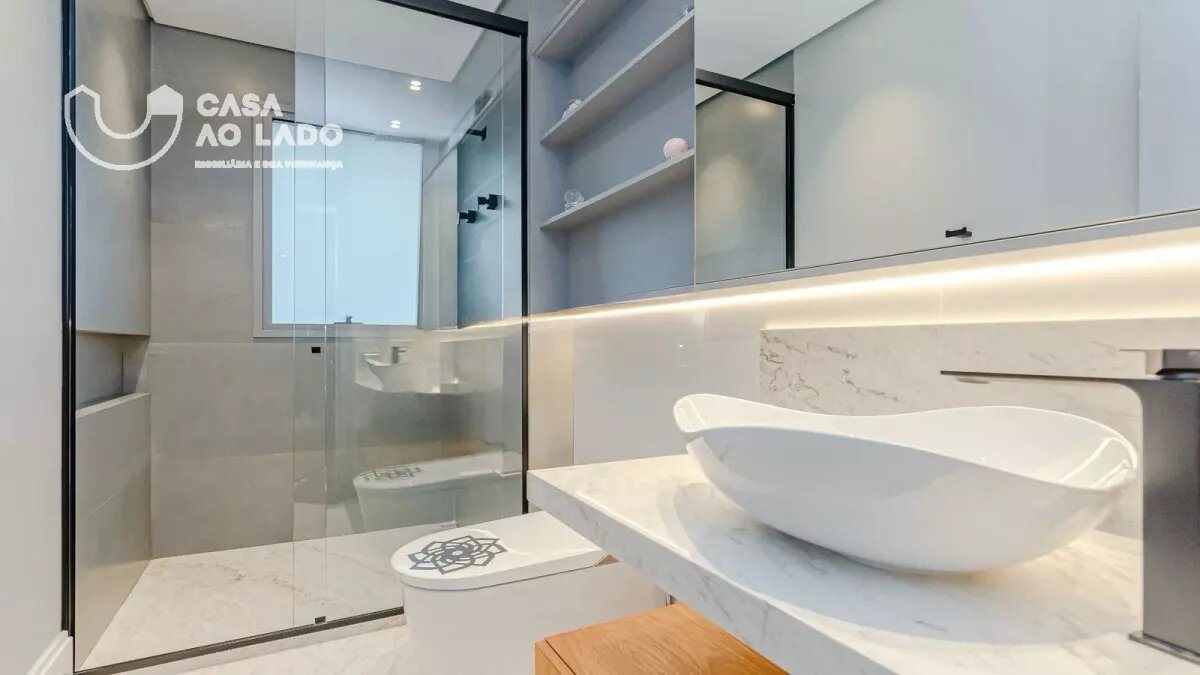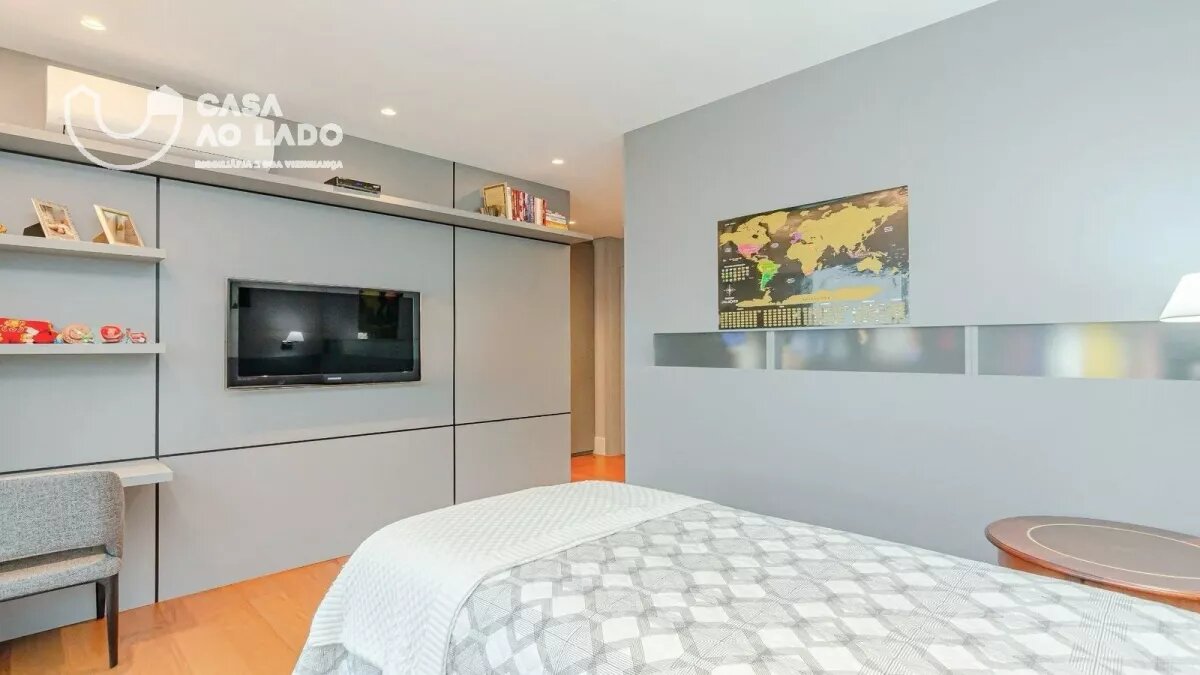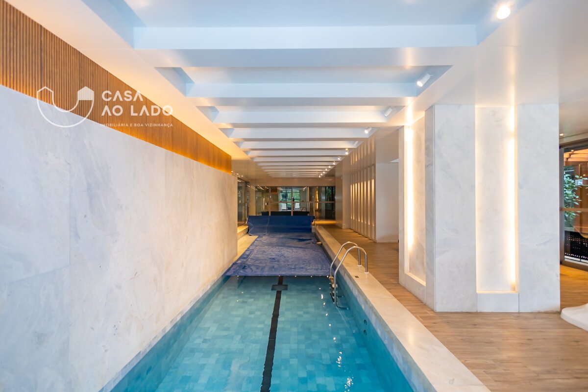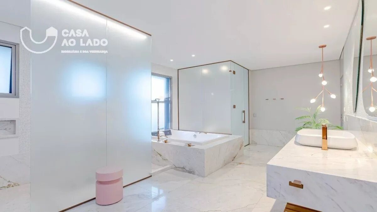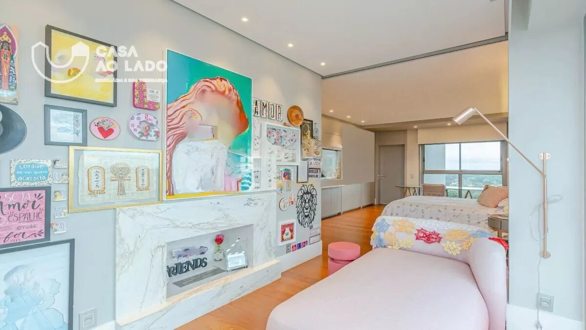 Ambientes amplos e perfeitamente integrados. A área social oferece sala de jantar, sala de estar com lareira, espaço gourmet com churrasqueira a carvão, sala de TV, adega climatizada para 150 garrafas e uma deliciosa sacada totalmente incorporada ao living. Na área íntima, são 3 excelentes suítes, com possibilidade de reversão para 4. A suíte master é encantadora: conta com amplo closet, sacada privativa, lareira, banheiro espaçoso com duas duchas, banheira de hidromassagem, toalheiro térmico e vaso sanitário com assento eletrônico Toto. Todas as janelas são generosas, com 2,20m de altura e persianas motorizadas, garantindo luminosidade e conforto. Os banheiros apresentam bancadas e piso em mármore Branco Paraná com aquecimento, duchas e torneiras de alta qualidade e ralo linear.