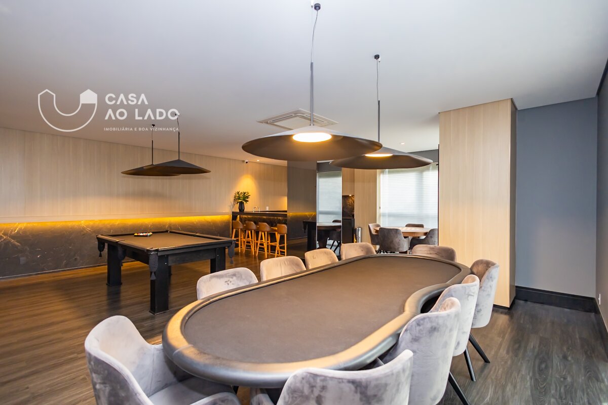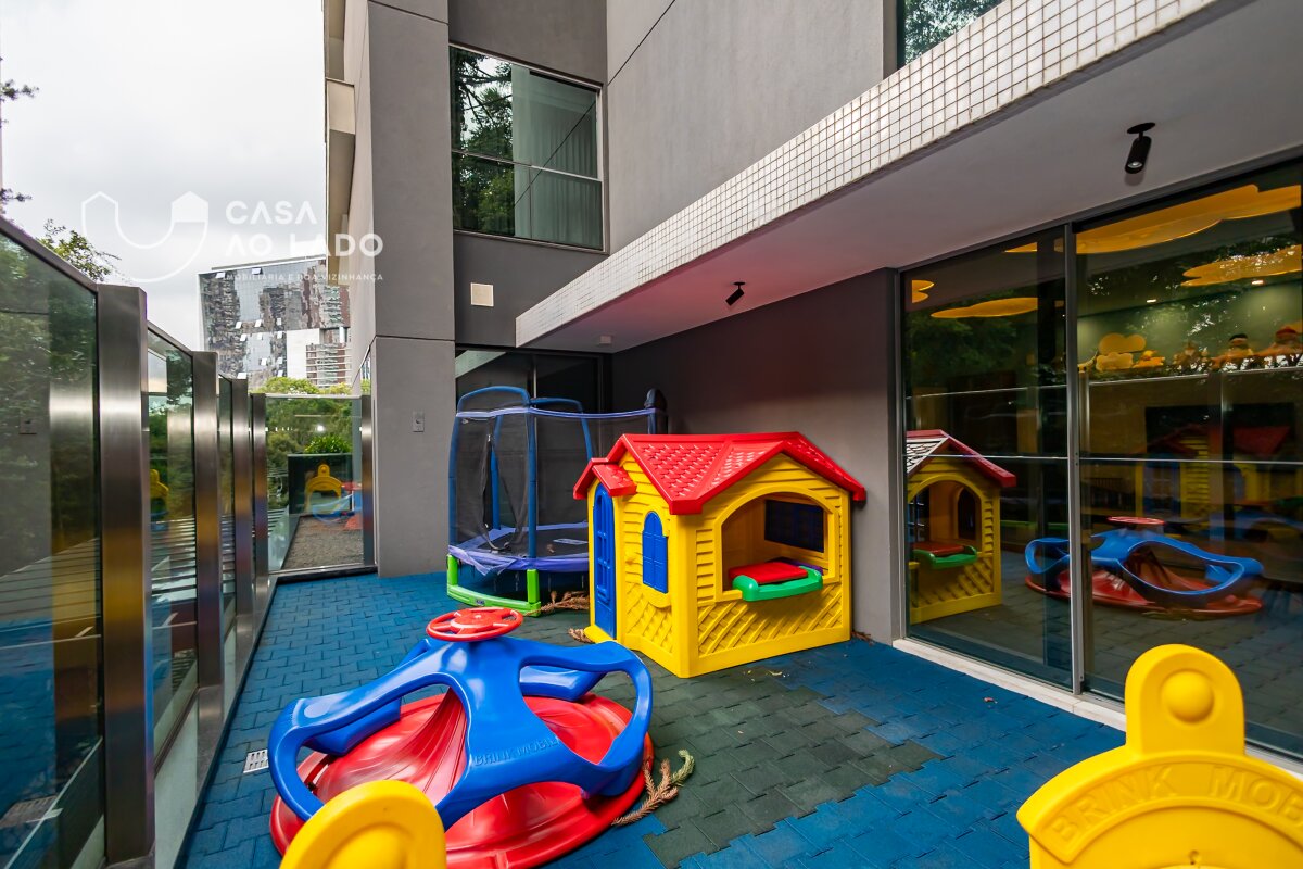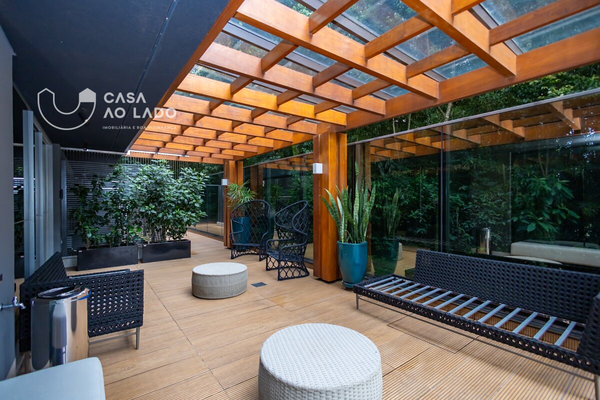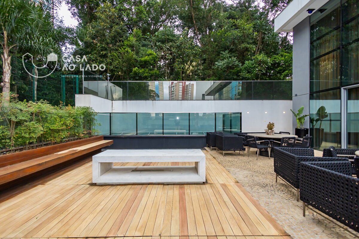 Comodidades: Espaço Gourmet com churrasqueira a carvão, chopeira, varanda e lounge, Salão de Festas com churrasqueira e terraço com lareira voltado ao bosque, Sala de reunião, Sala de jogos, Espaço teen com games, Espaço Fitness completo com equipamentos Life Fitness, Sala de massagem, Espaço Kids com playground e brinquedoteca, Piscinas coberta e descoberta, ambas aquecidas, com Spa, Espaço Zen, Garagem com pintura epóxi, Vagas para visitantes, Tomadas especiais para carros elétricos, Portaria 24h
