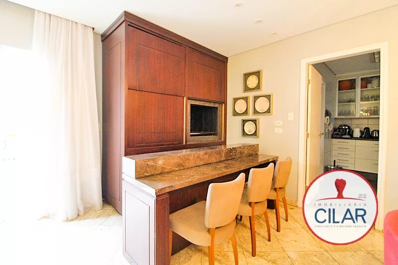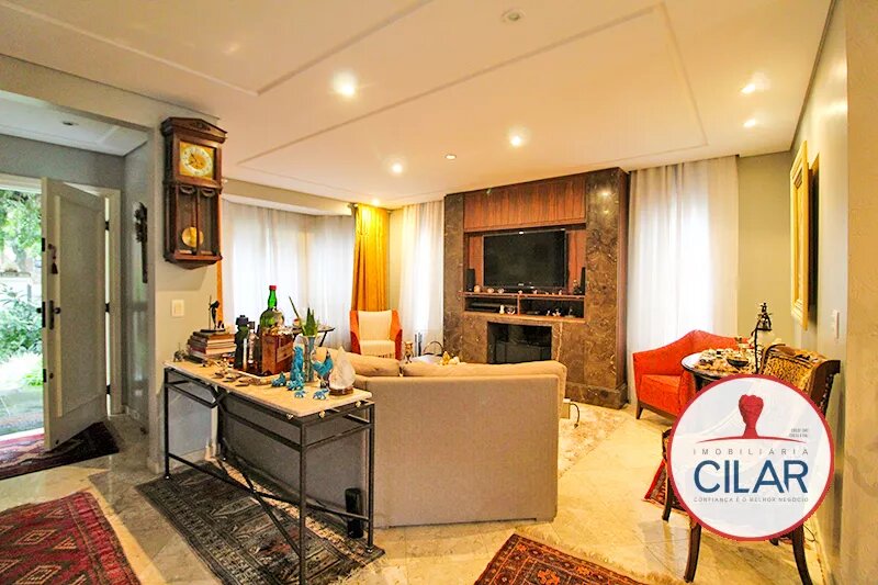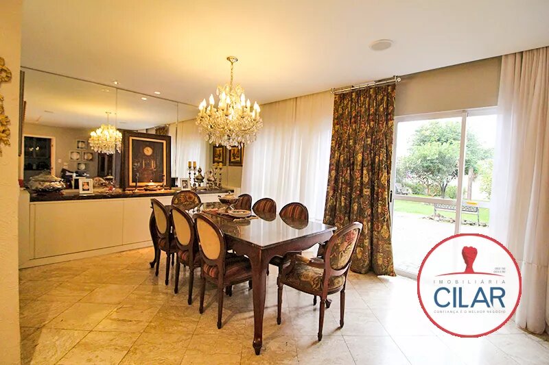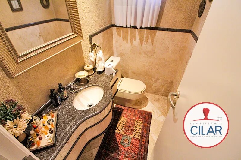 Parte térrea com 01 quarto com armário, anexo 01 jardim de inverno, 01 lavabo, 01 sala para 02 ambientes com lareira, piso de mármore, 01 sala de jantar com churrasqueira, balcão em granito, 01 cozinha com pia granito e armário, 01 lavanderia e 01 deposito.