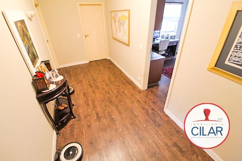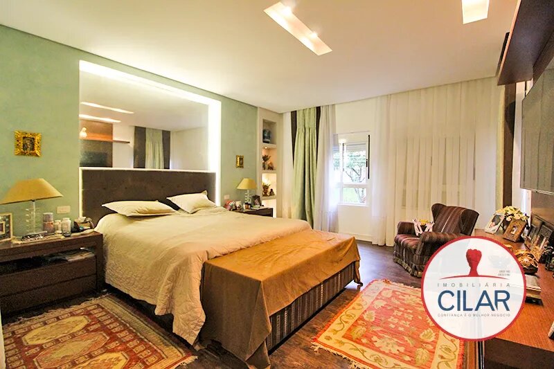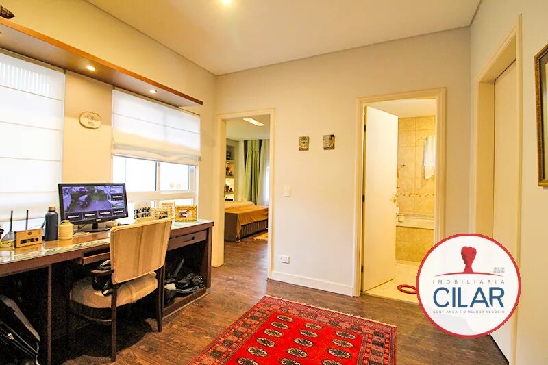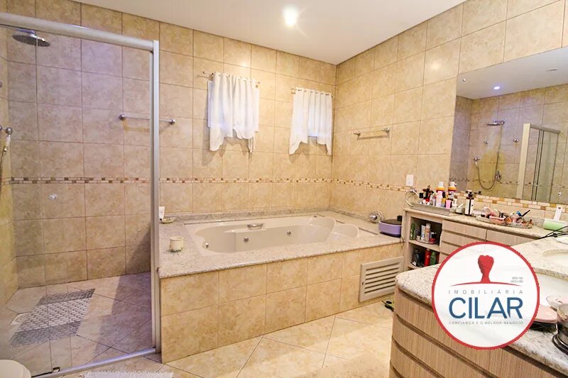 Parte superior com 01 suíte com armário, box blindex, 01 suíte master com hidromassagem, closet com armário, junta a suíte 01 escritório, 01 quarto com armário para roupeiro, 01 suíte com box blindex e armário.