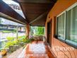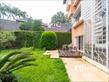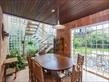 Churrasqueira coberta integrada ao jardim com ótima área ensolarada.