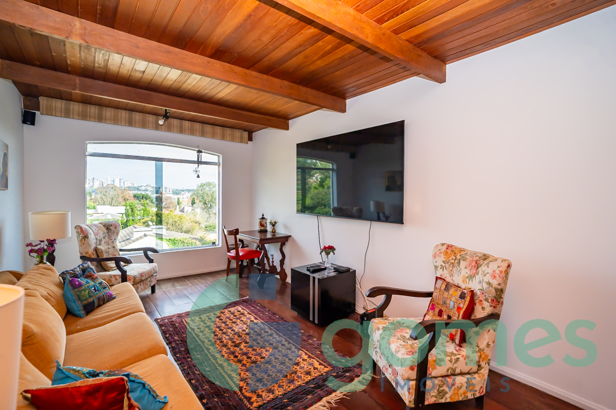 No andar superior, você encontrará quatro dormitórios, incluindo duas suítes equipadas com lareira, proporcionando um ambiente acolhedor. Todos os quartos contam com amplas sacadas que oferecem uma vista deslumbrante para o Parque Barigui. Além disso, um charmoso closed em madeira planejada e uma sala de banho com banheira garantem um toque de elegância e praticidade. A sala de estar é ideal para momentos de relaxamento e convivência em família