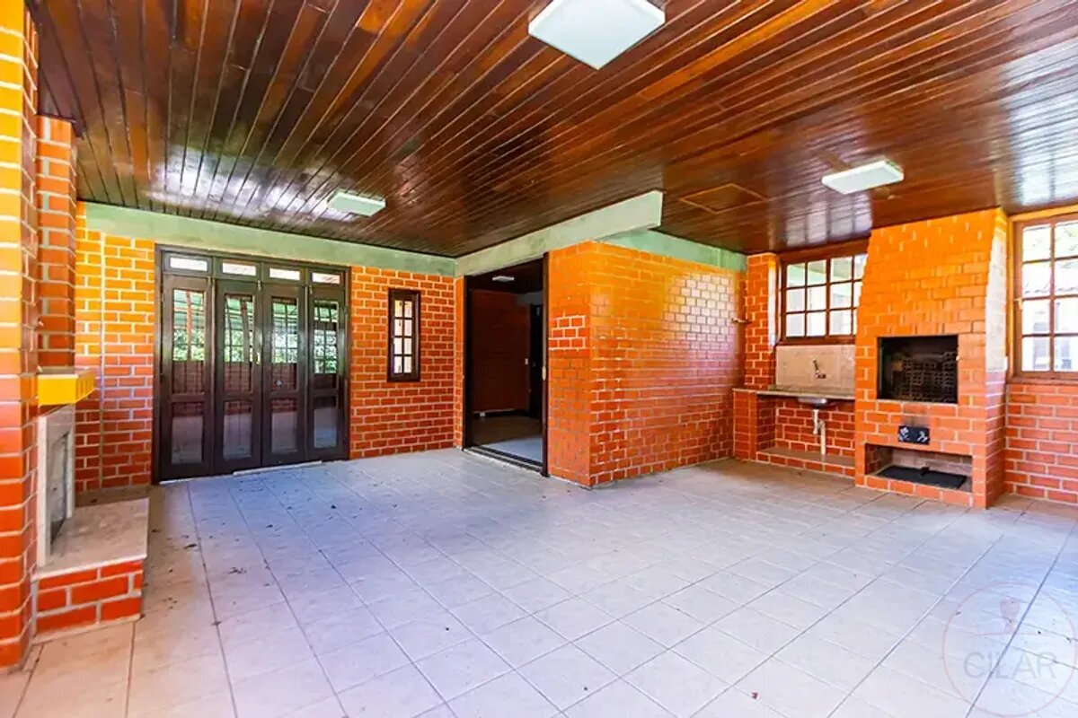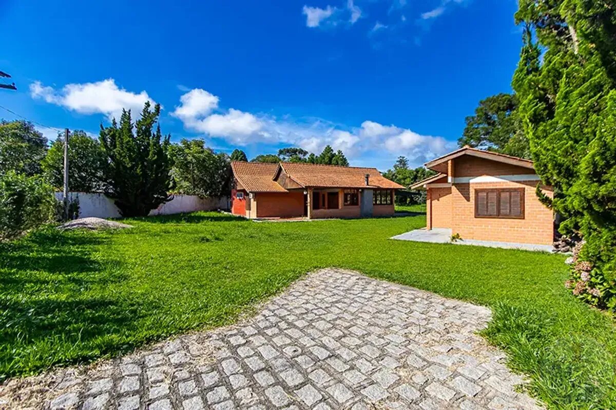 CASA PRINCIPAL (170,00m²): Sala de estar com lareira, sala de Jantar, sala íntima, 03 dormitórios (1suíte), cozinha, despensa, churrasqueira e garagem coberta.