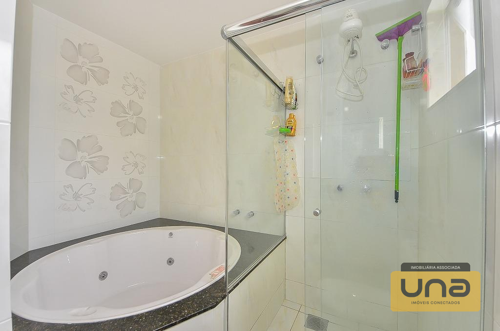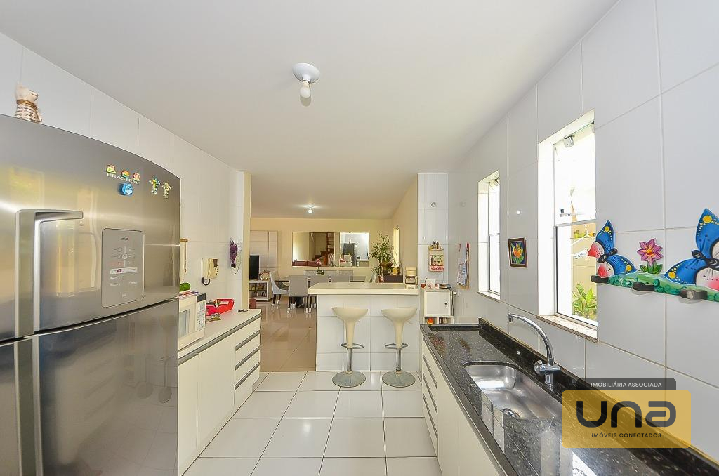 Imóvel com 4 suítes, sala de estar, lavabo, sala de jantar, cozinha tipo americana, churrasqueira a carvão, área de serviço, escritório ou sala de tv.
