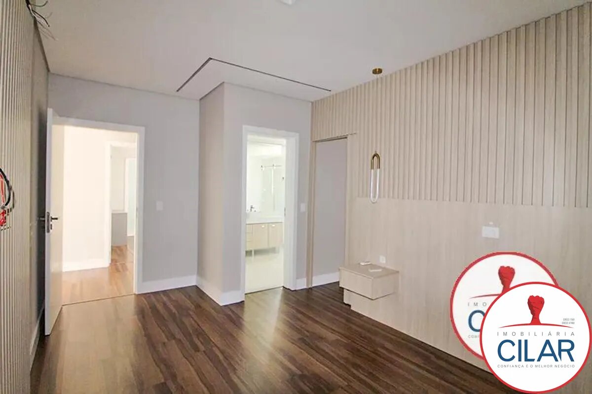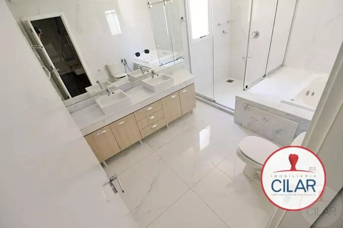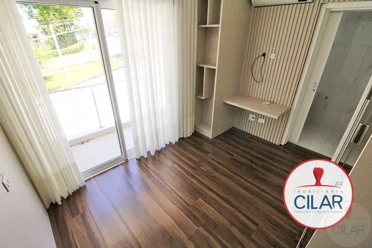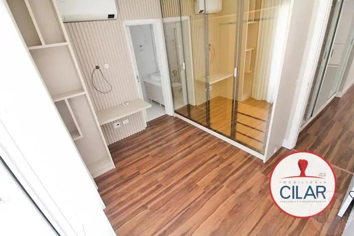 1º Piso: 01 Suíte master com closet com armário, persiana, ar condicionado, banheiro com hidromassagem e box blindex + 03 suítes com armários, persiana, ar condicionado e banheiro com box blindex, Piso laminado;