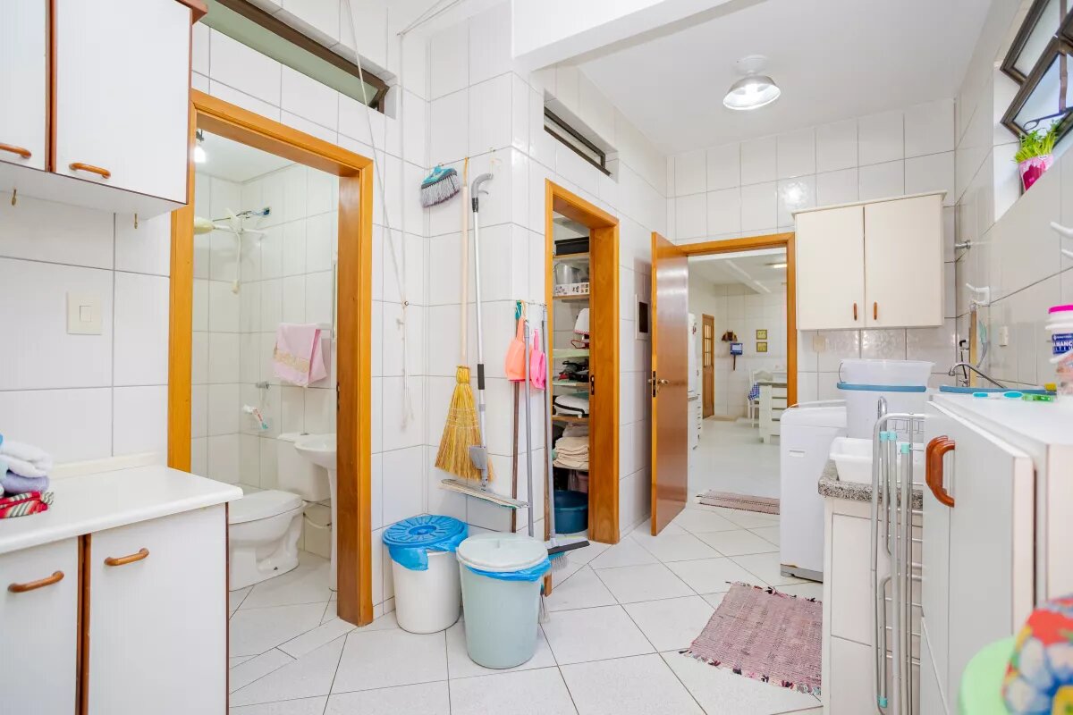 A cozinha é ampla e possui armários planejados, além de contar com uma despensa para armazenar mantimentos e utensílios. A área de serviço é completa e possui uma central de gás, garantindo praticidade no dia a dia. A casa também conta com uma churrasqueira coletiva e uma churrasqueira privativa, perfeitas para reunir amigos e familiares em momentos de lazer.