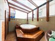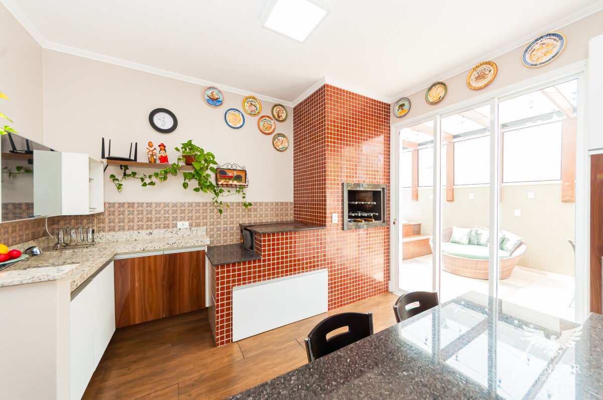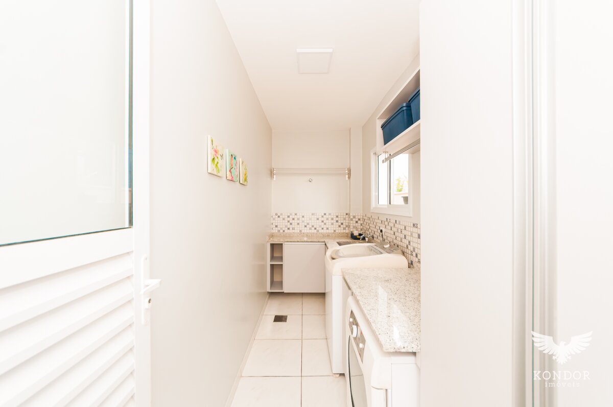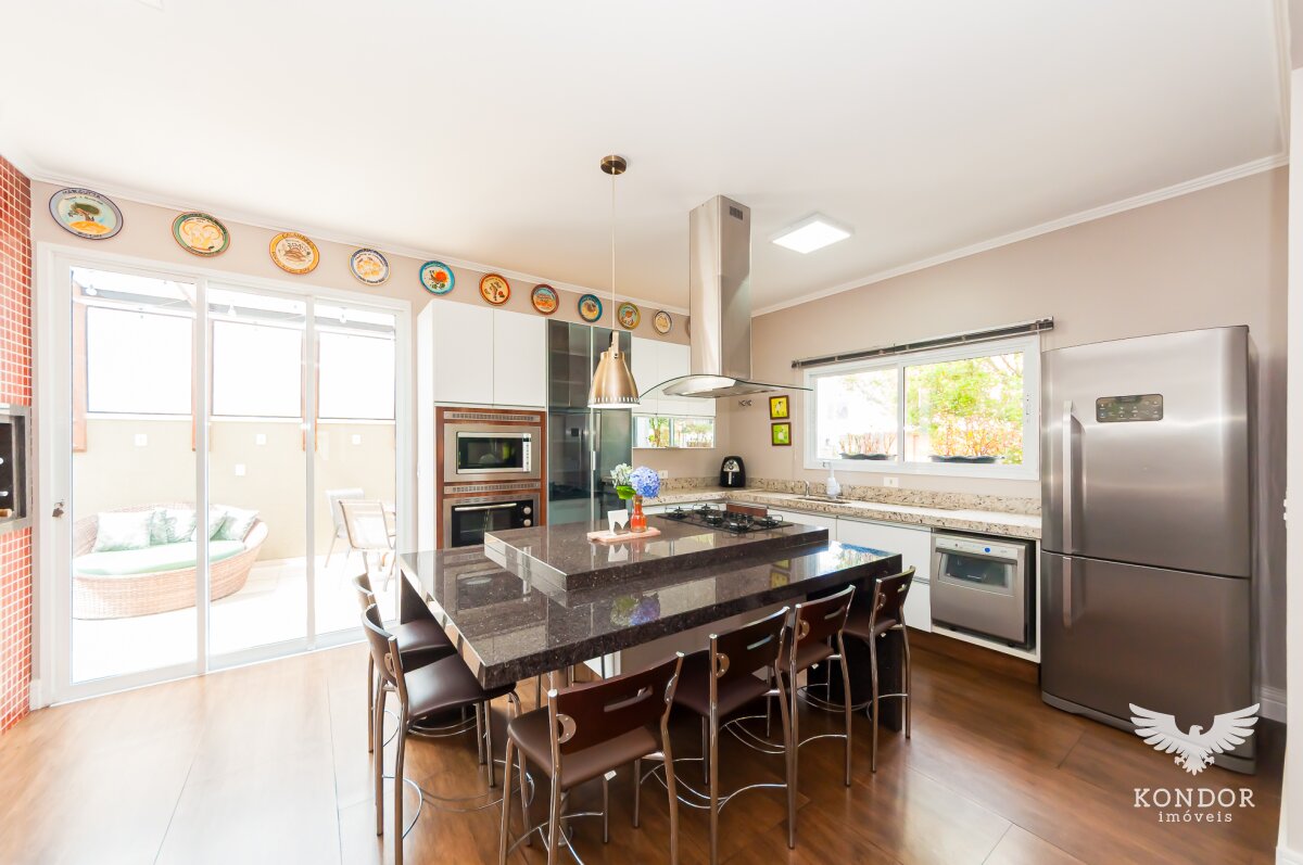 - 1º piso terreo: Sala espaçosa com conceito aberto de acesso direto para cozinha (ar condicionado 30 mil btus), 01 quarto/escritório, banheiro social, cozinha completa com armários, pia e ilha toda em granito, churrasqueira com espetos giratórios em inox, fogão a lenha e bancada com pia em granito, forno elétrico, microondas, coifa e lavadora de louças, área de serviço com armários (02 aquecedores de 22 litros). E a parte anexo externa com banheira dupla "ofurô" aquecida por sistema elétrico ou a gás, com cobertura em vidro blindex e deck em madeira.