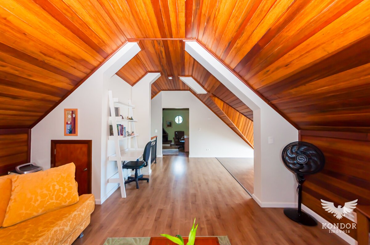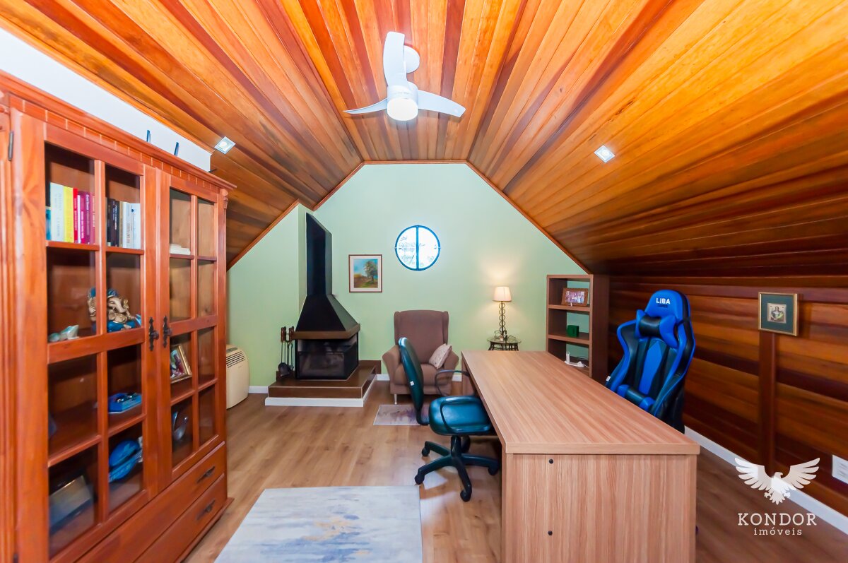 3º piso: Atico espaçoso com varanda, lareira e escritório, podendo separar o ambiente em escritório/quarto ou sala de cinema.