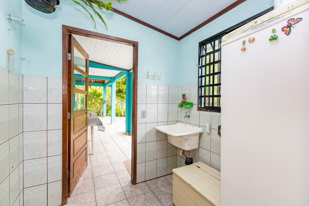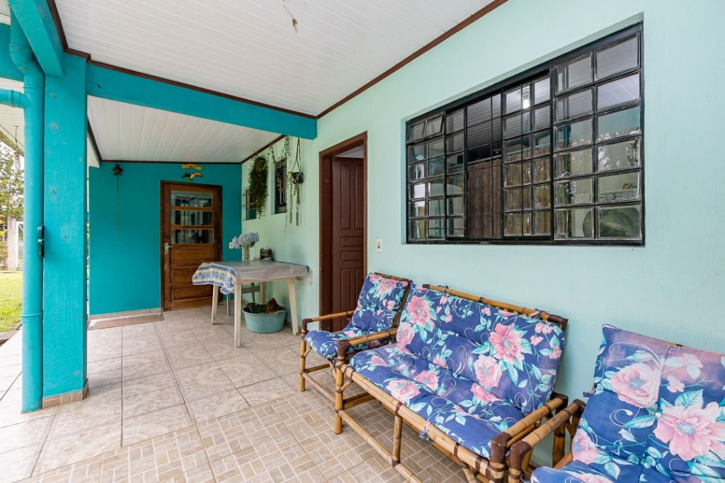 Casa sede em alvenaria, com aproximadamente 120m², toda avarandada, composta por: