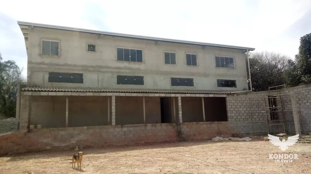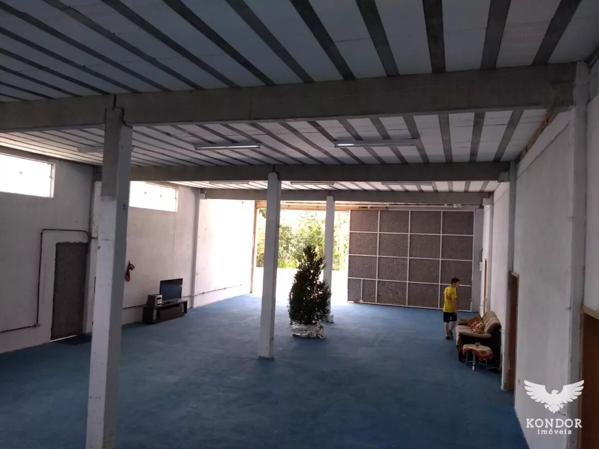 * Barracão em alvenaria com 250m², pé direito com 4,30m de altura, tendo portão de 4 metros. Possui 02 banheiros, cozinha e 01 escritório. Além disso, o barracão também conta com 02 apartamentos, com 100m² cada e tendo 03 quartos (sendo 01 suíte), sala e cozinha conjugadas, banheiro social e garagem no térreo.