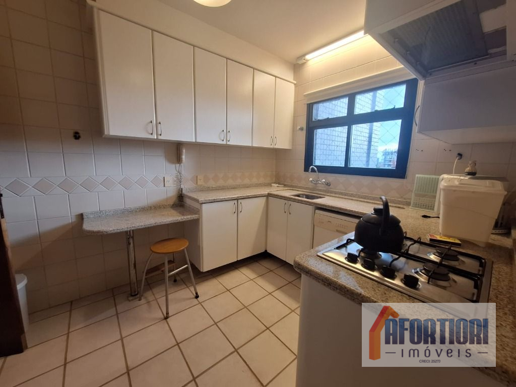 Cozinha equipada com cooktop, geladeira duplex, máquina de lavar louças, micro-ondas, forno elétrico, filtro de água.