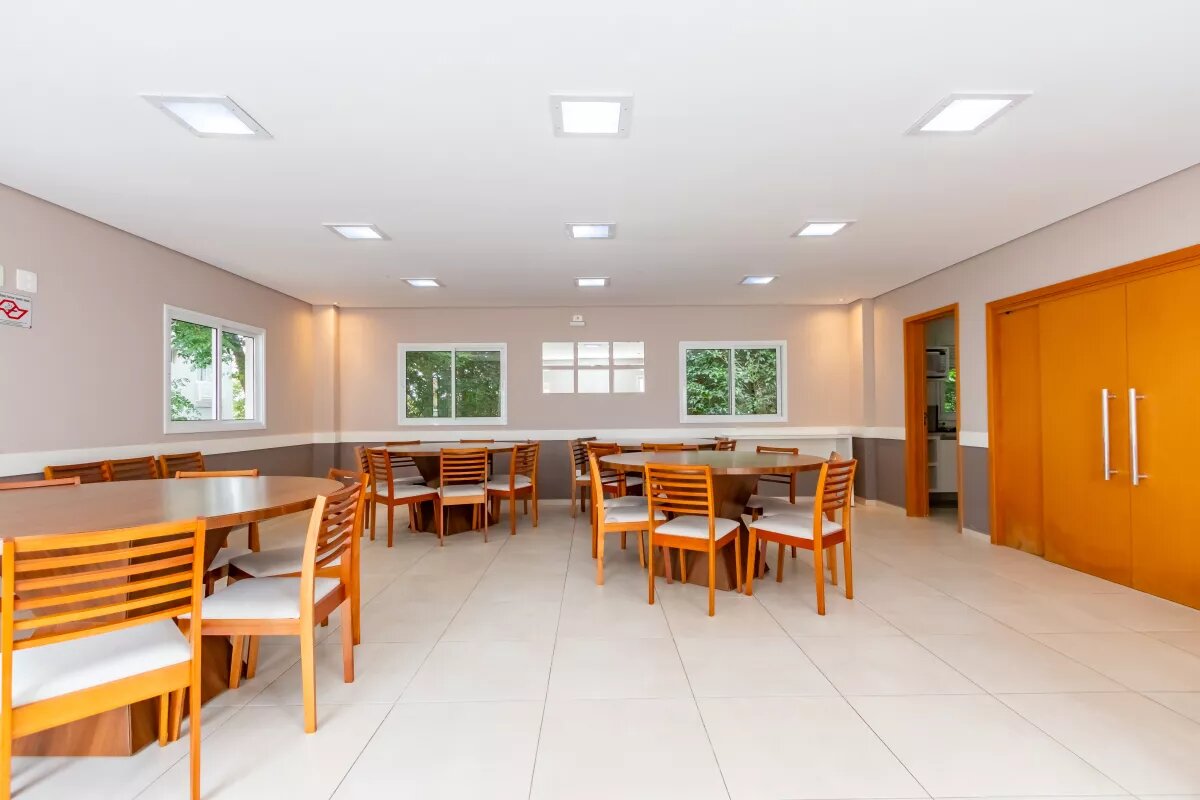 Celebre momentos especiais no salão de festas, equipado para receber seus convidados com conforto.