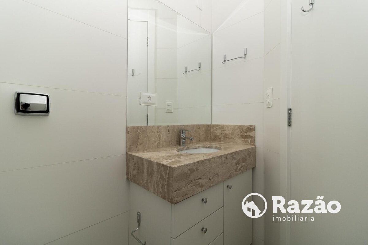 02 Lavabos funcionais com pia, espelho e vaso, ideal para apoio da área social.