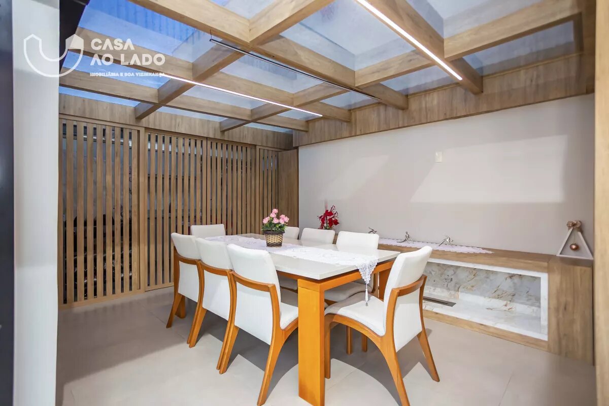 A área gourmet é um dos grandes destaques, equipada com cozinha com churrasqueira a carvão, ilha com cooktop a gás e espaço de refeição para até 4 pessoas. Conta ainda com uma sala de estar com rack e cristaleira, além de uma sala de jantar com lareira. O andar também oferece um banheiro completo, área de lavanderia separada com máquina lava e seca, armários e ótimo espaço de armazenamento. O fechamento em Reiki permite integrar os ambientes internos com a vista externa, tornando o espaço ainda mais aconchegante e versátil.