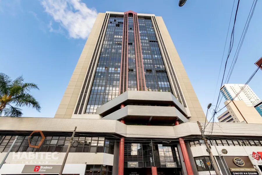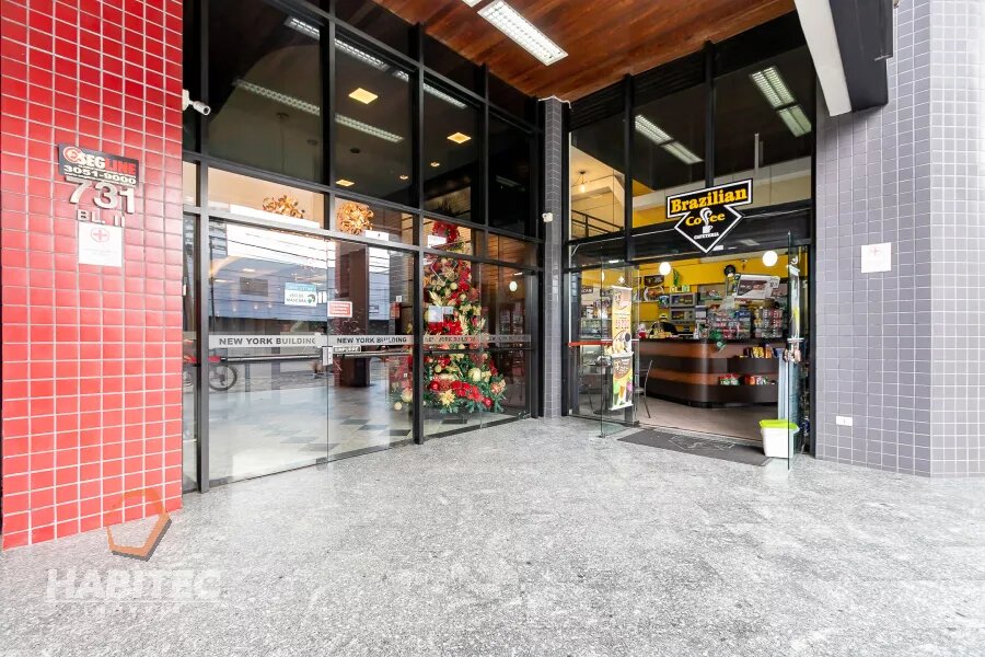 Sala comercial em região central de Curitiba no Edifício New York Building, na Rua João Negrão, 731, esquina com Av. Visconde de Guarapuava, sala com luminárias, copa e banheiro com armários, prédio com boa infraestrutura, próximo à unidade dos Correios, Posto Ipiranga 24hrs, Shopping Estação, Restaurantes, Hotéis, Supermercado e UFPR Campus Rebouças. O prédio conta com estacionamento terceirizado.