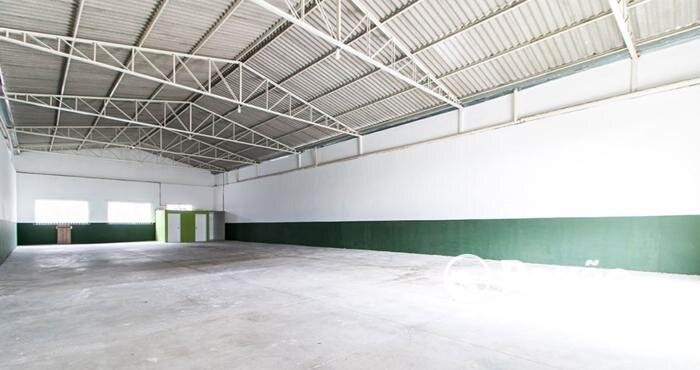 Contendo: Barracão em vão livre de 360,00m² com pé direito de 5,60m e 2 portas de aço com 3,20m. Contendo 02 banheiros e cozinha.