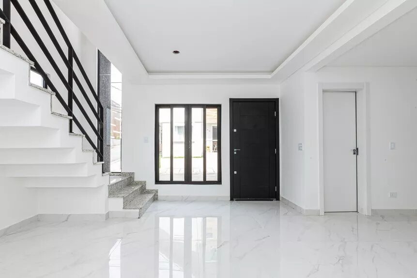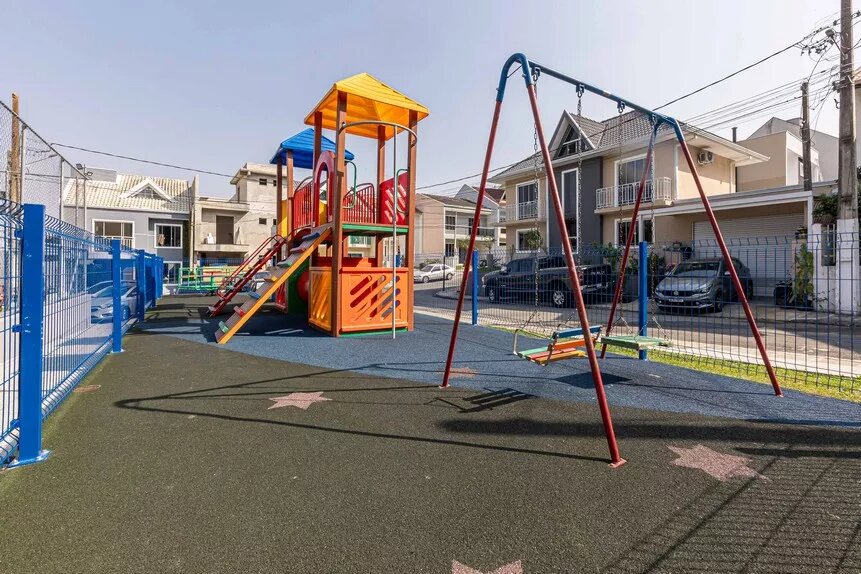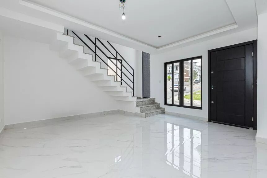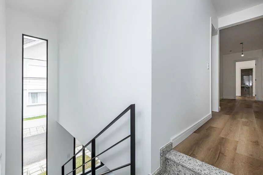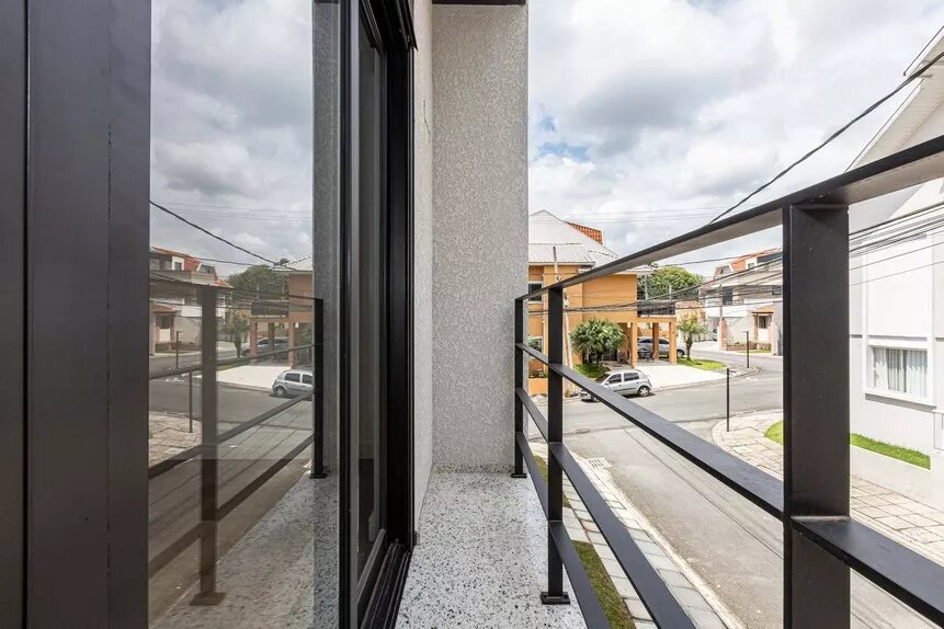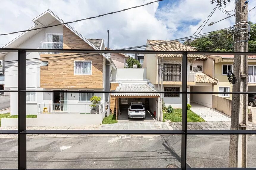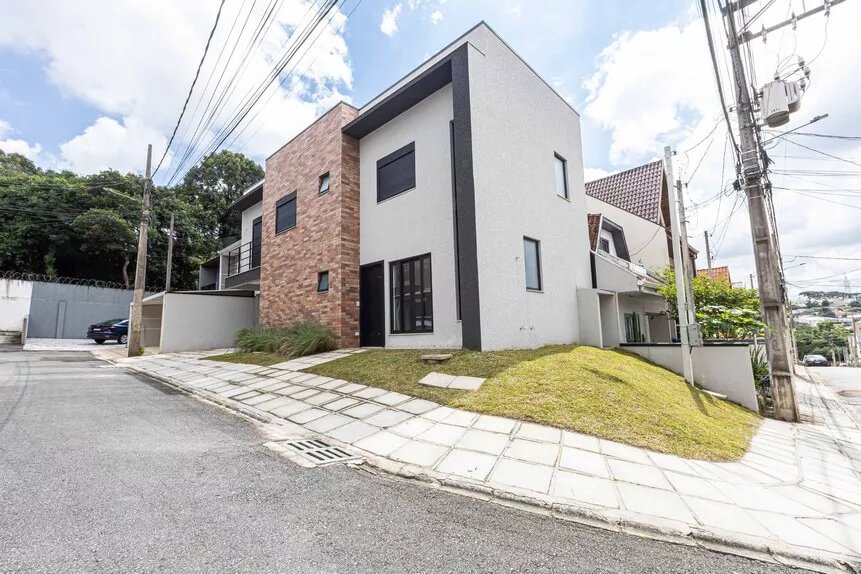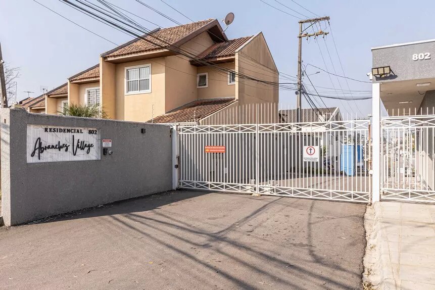 Lindo sobrado, novo, ótimo acabamento, de esquina, em condomínio fechado no bairro Abranches, com 153 m² averbados, com 3 amplos dormitórios (sendo 1 suíte), banheiro social, lavabo, sala 2 ambientes e cozinha conceito aberto com piso em porcelanato, lavanderia, duas vagas de garagem paralelas e churrasqueira.