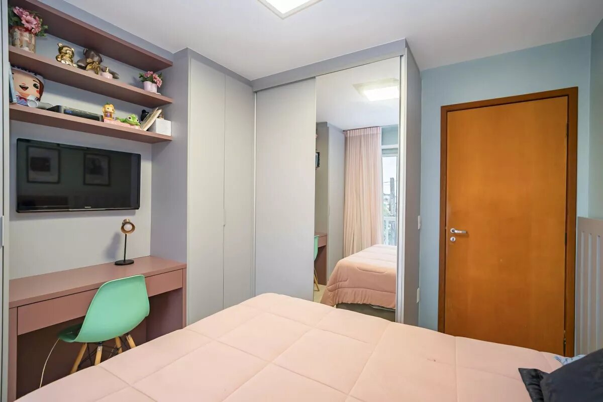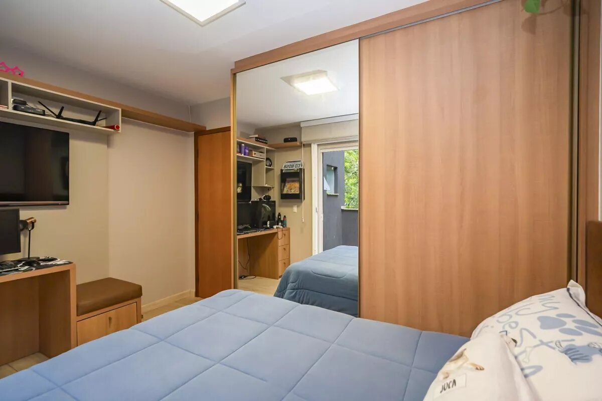 No segundo piso 1 suíte com closet, ar condicionado e varanda, rouparia no corredor e mais 3 quartos, amplos e com armários planejados.