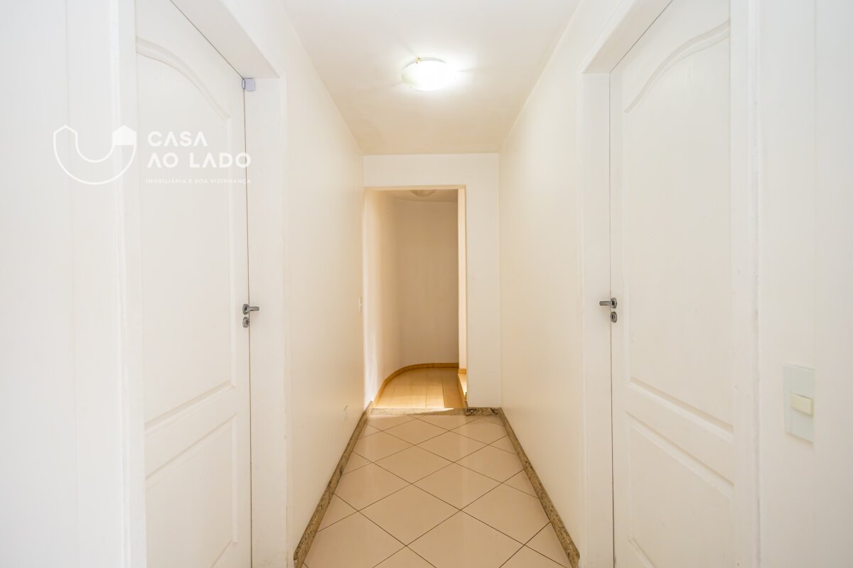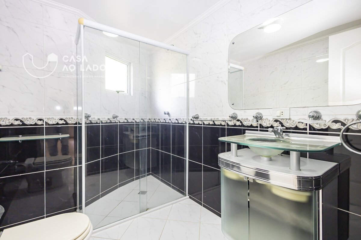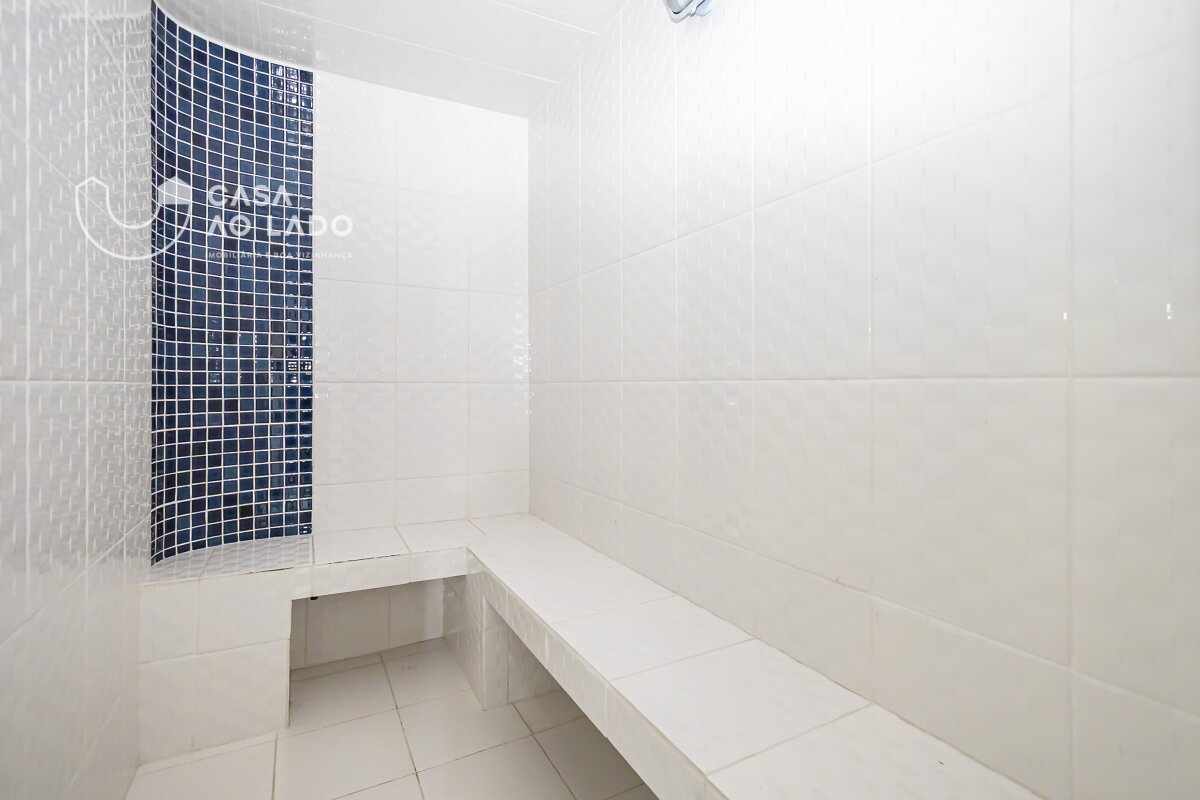 O terceiro pavimento abriga a suíte master, com closet planejado, quarto espaçoso, banheiro com hidromassagem e sauna, criando um ambiente exclusivo de descanso e bem-estar.