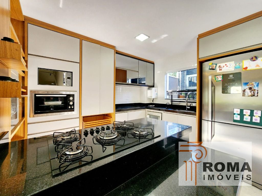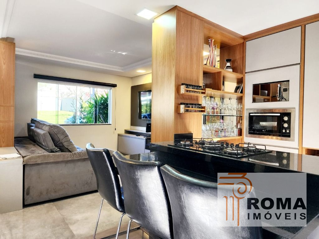 Sala de estar ampla com cozinha planejada e conjugada, previlegiaando um ambiente moderno e arejado, com copa, fogão cooktop e forno elétrico;