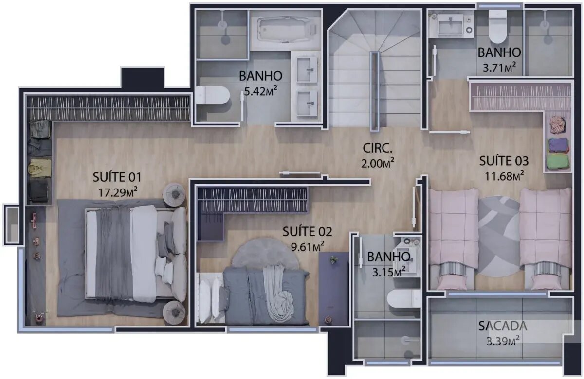 Com um projeto moderno e sofisticado, o condomínio foi pensado para quem busca conforto, praticidade e um estilo de vida único, proporcionando uma experiência de moradia exclusiva e diferenciada. As residências variam de 140 a 205 m² e oferecem opções de 3 quartos, com 1 a 3 suítes, 3 a 5 banheiros e de 2 a 5 vagas de garagem.