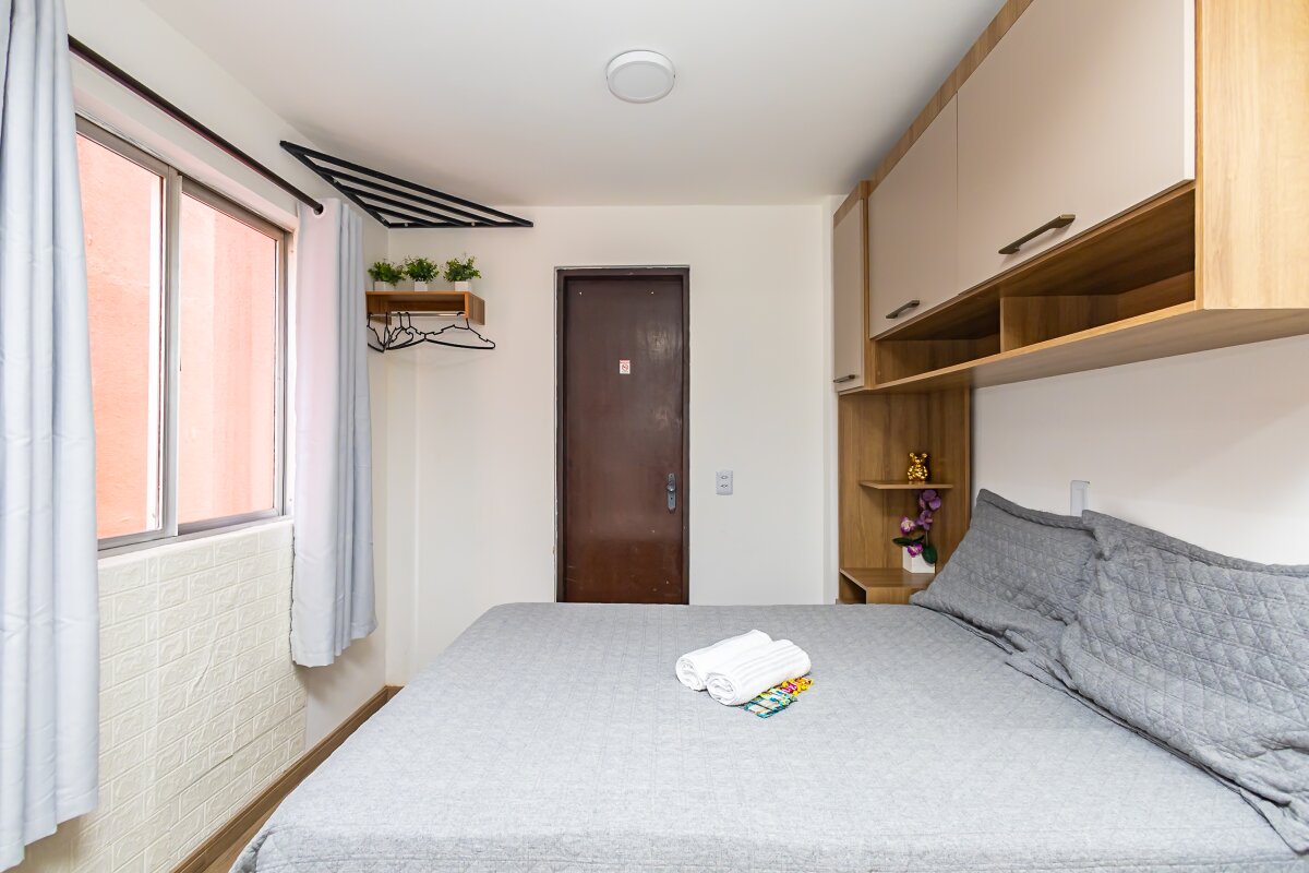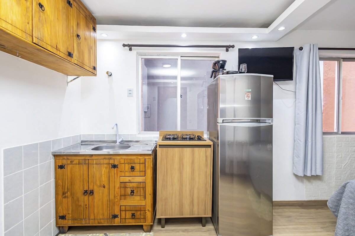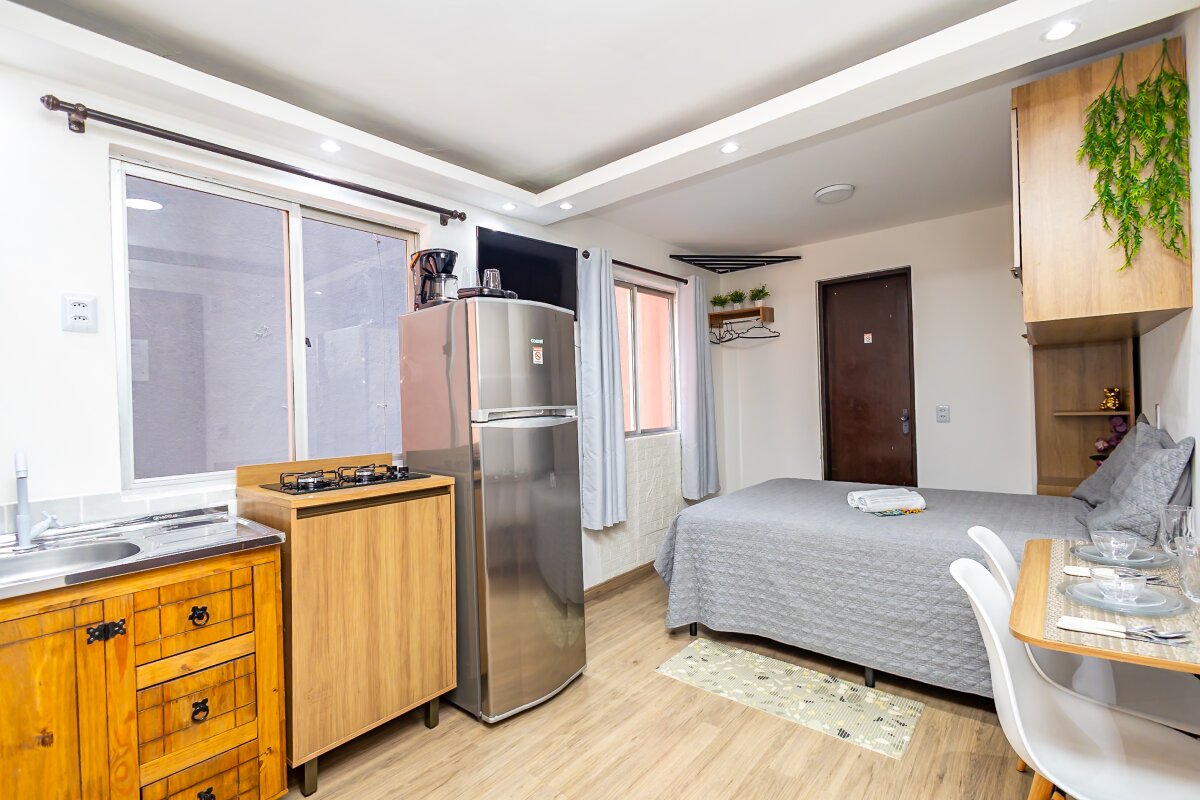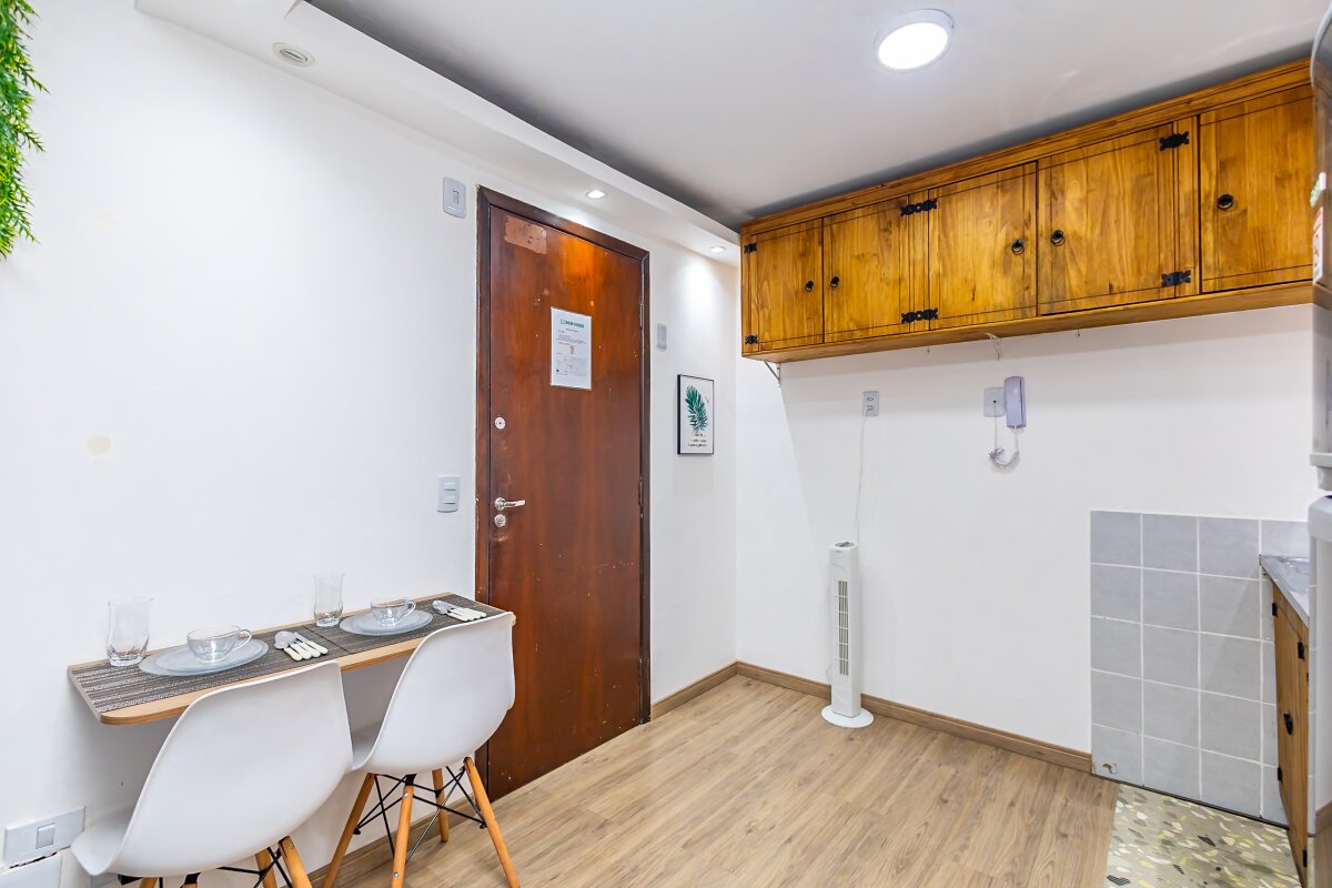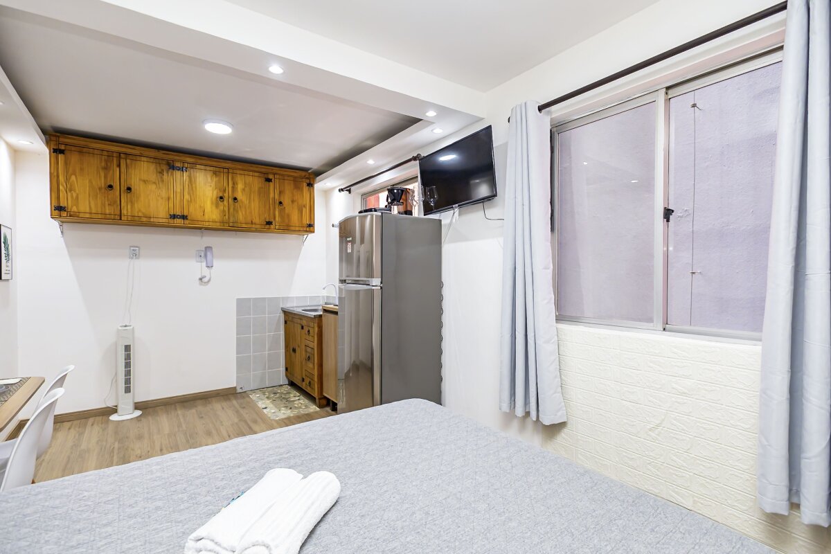 Com uma área privativa de 17,11m² e área total de 29,13m², o estúdio é compacto e funcional, ideal para solteiros ou casais que buscam um espaço aconchegante para morar. Além disso, o imóvel já vem mobiliado