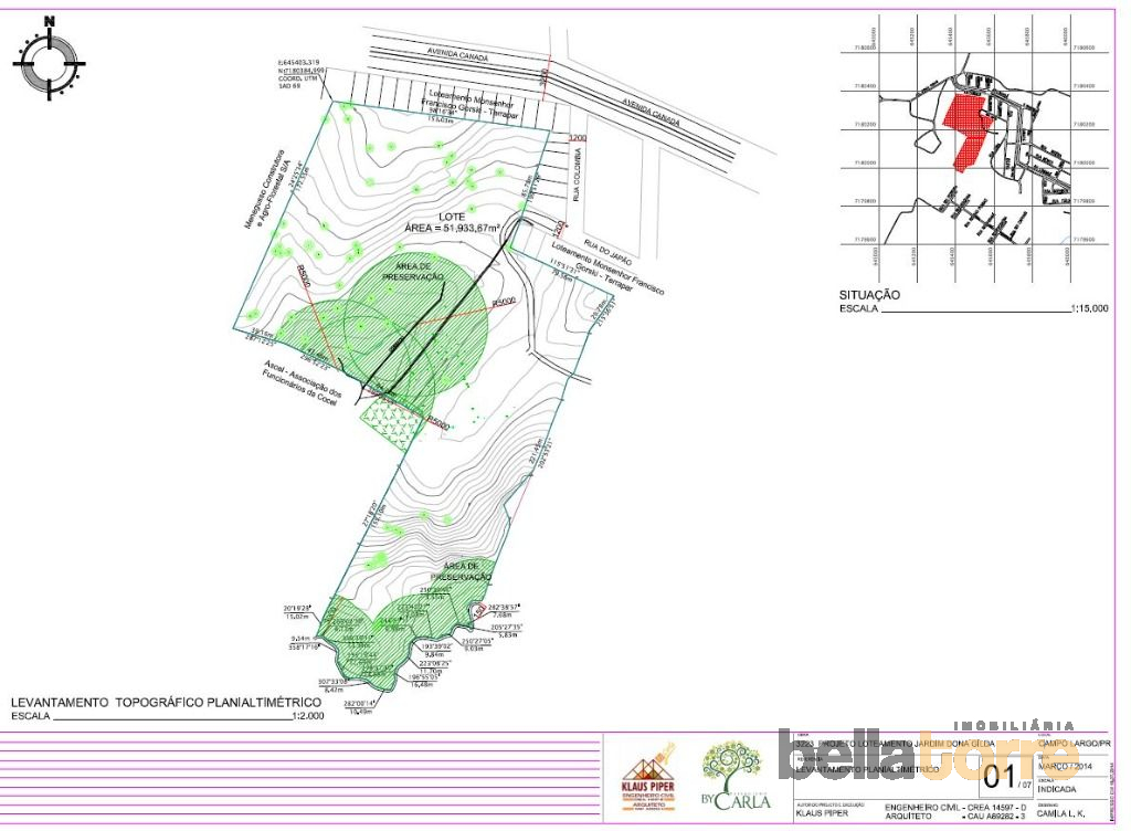 Já possui estudo para implantação de loteamento e é servido por Rede de Esgoto.